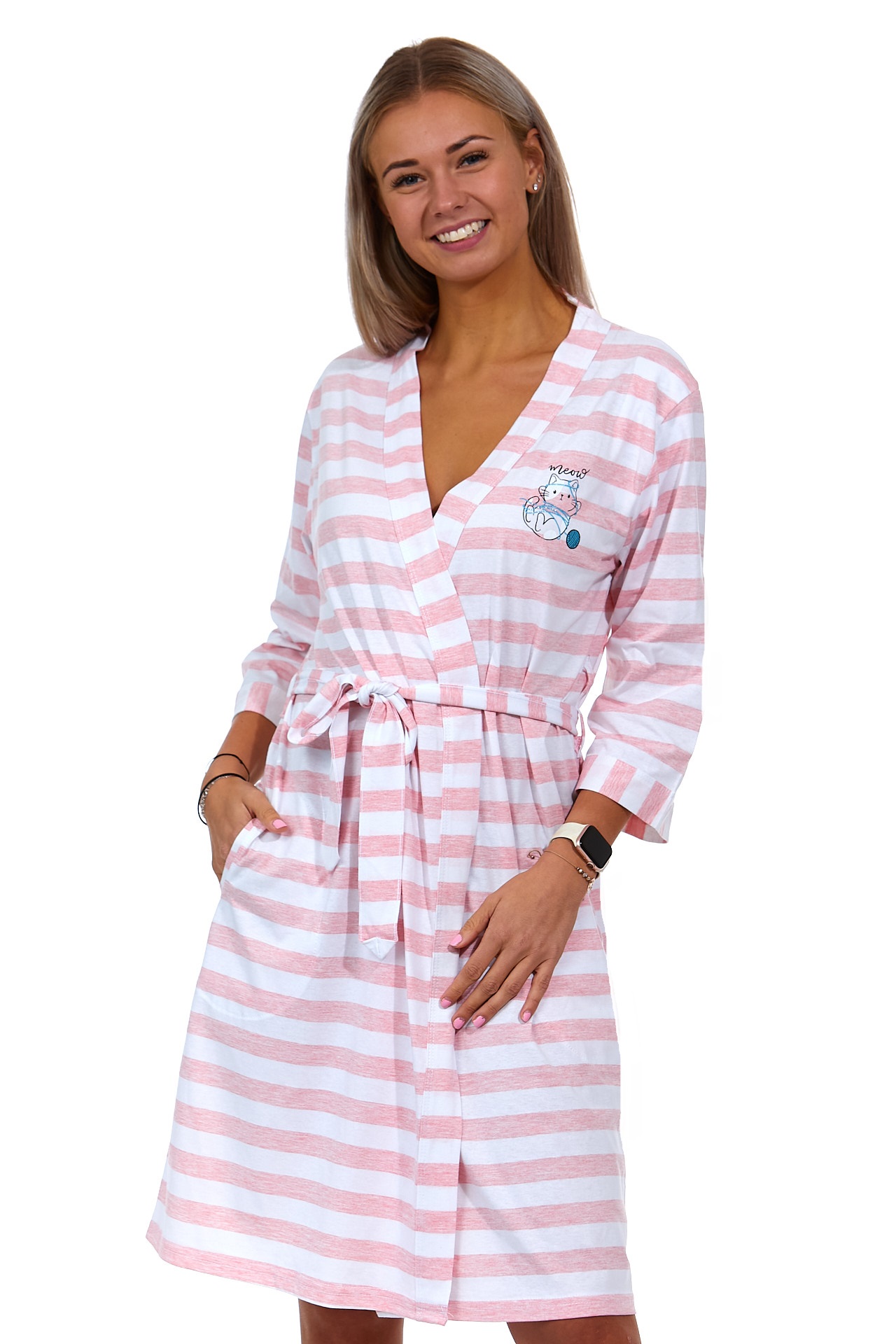 Růžově i šedě pruhovaný dámský župan - KOTĚ