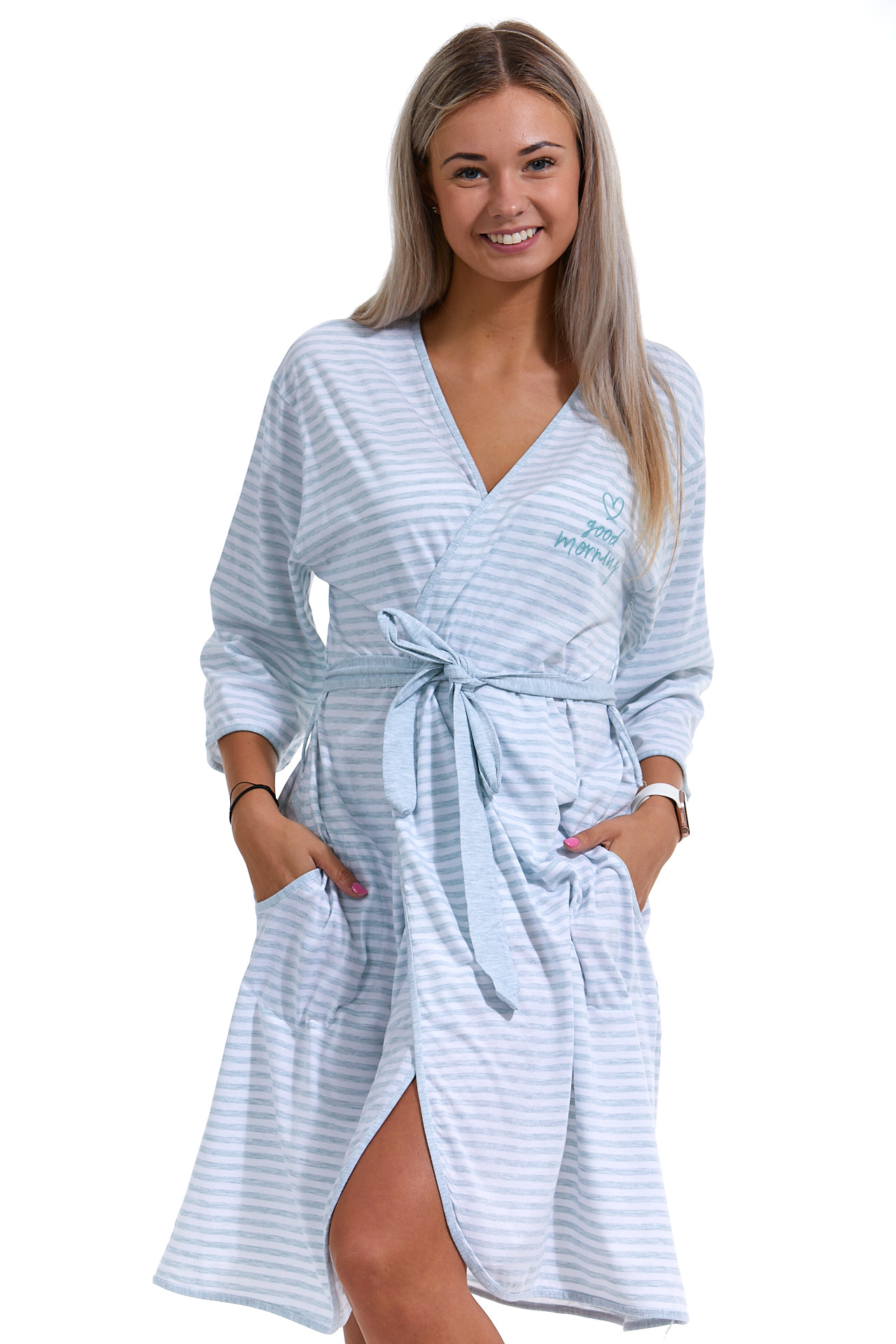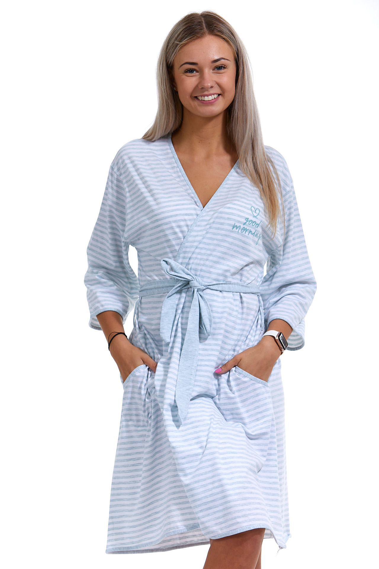 Zelinkavě i šedě pruhovaný župan pro plnoštíhlé ženy 5XL, 6XL, 7XL