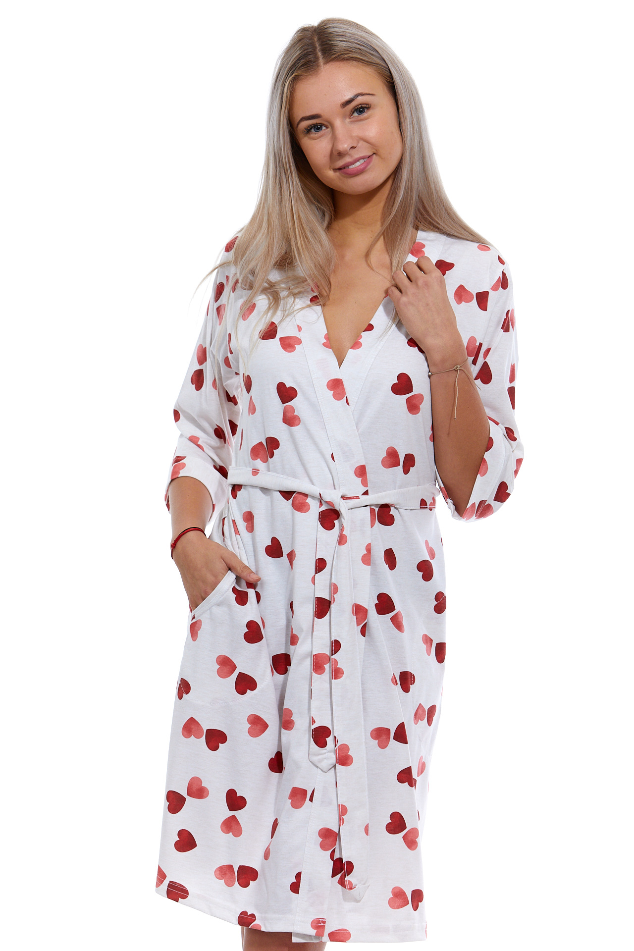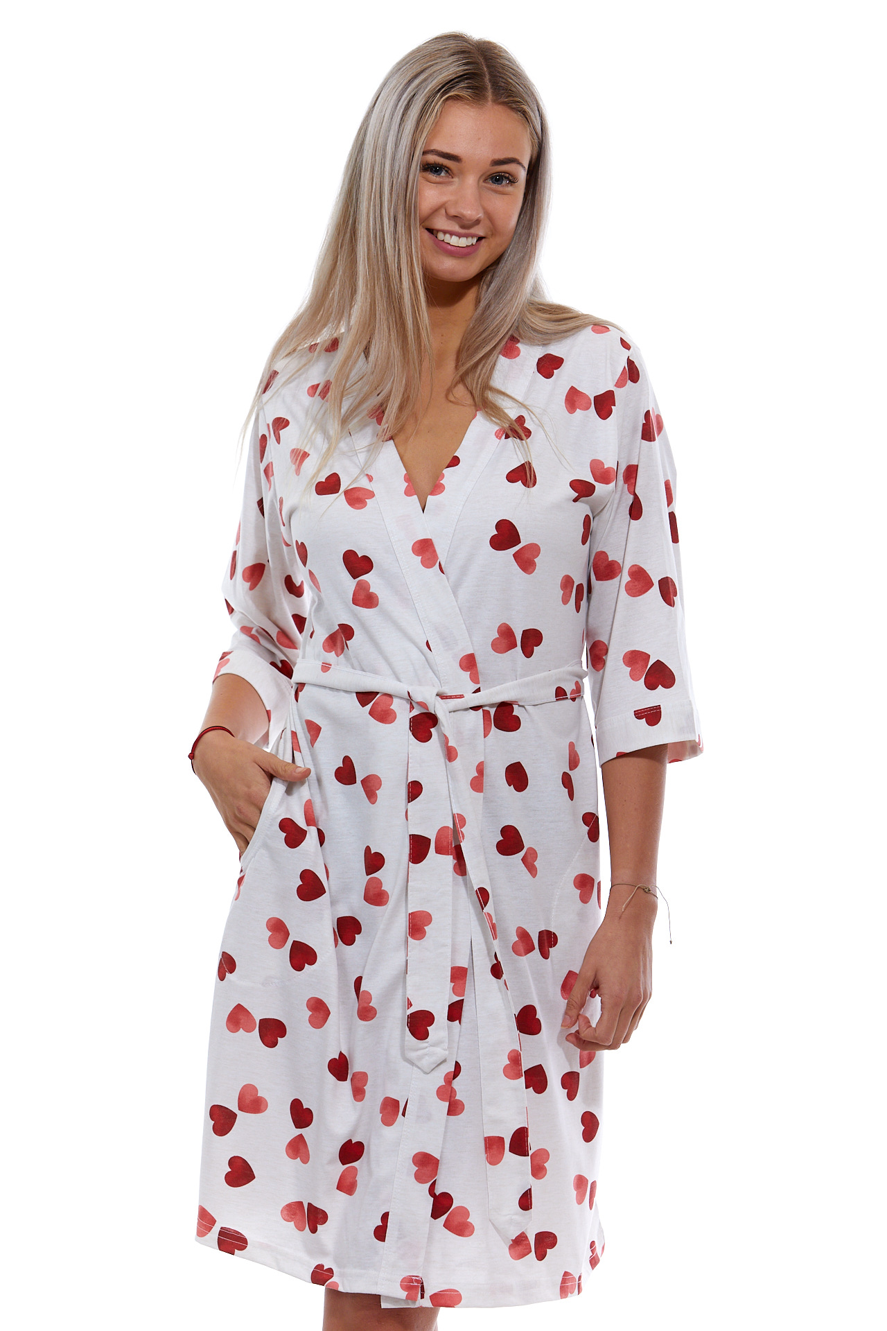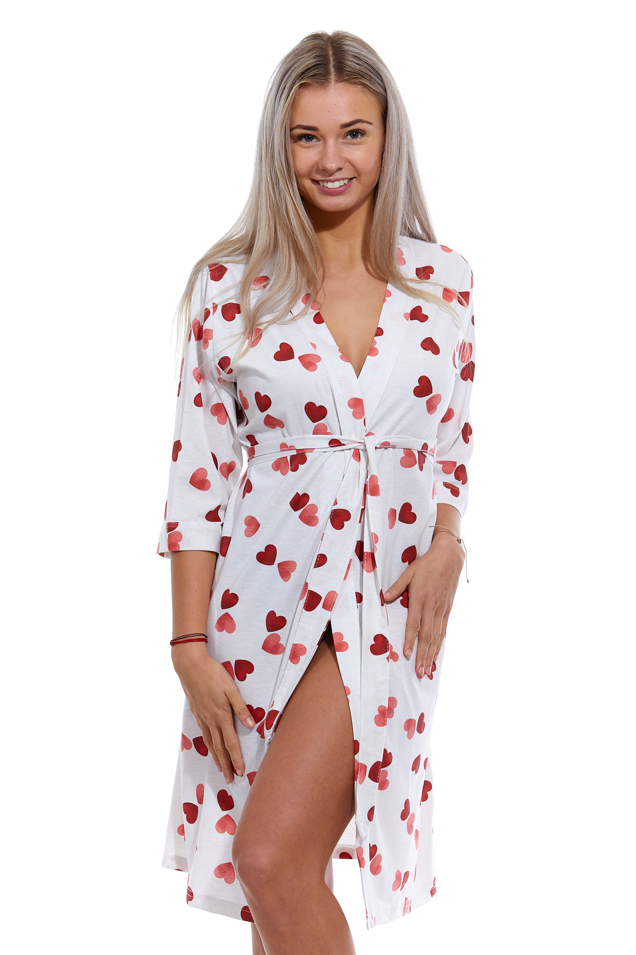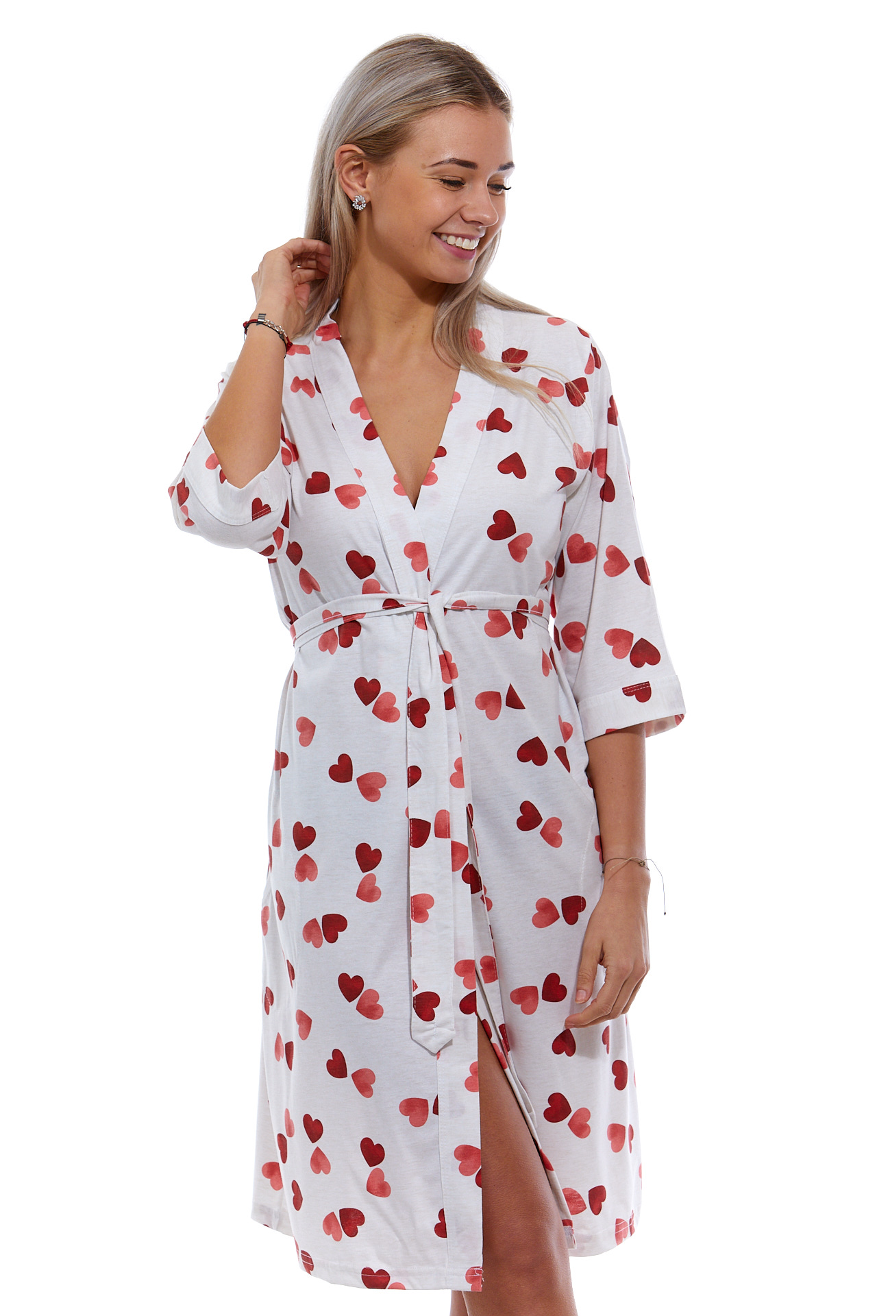 Perlově bílý i červený lehký kojící župan do porodnice se srdíčky 1G0515