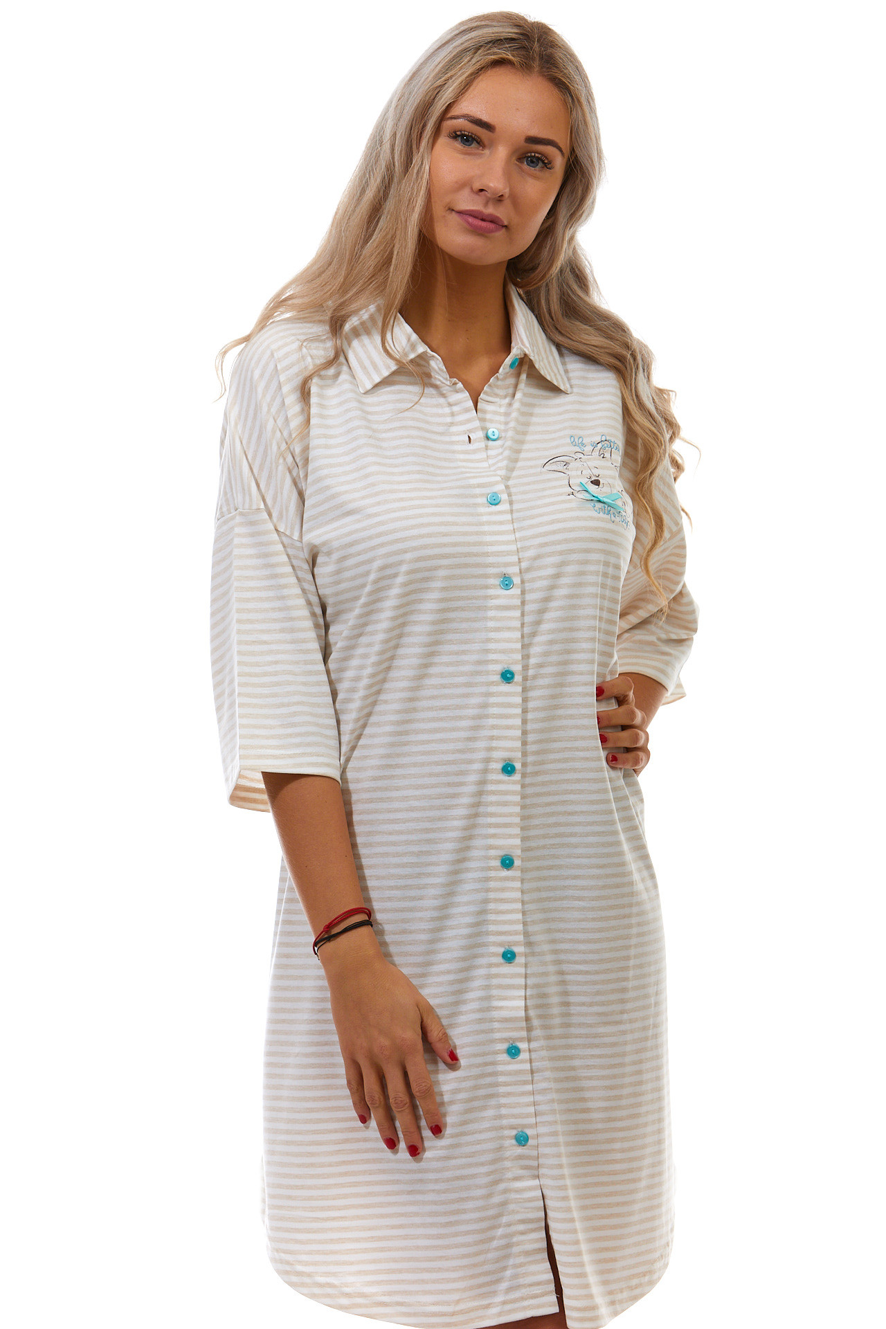 Béžová i světle hnědá pruhovaná košilka s límcem celopropínací pro ženy s pejskem 1C3460
