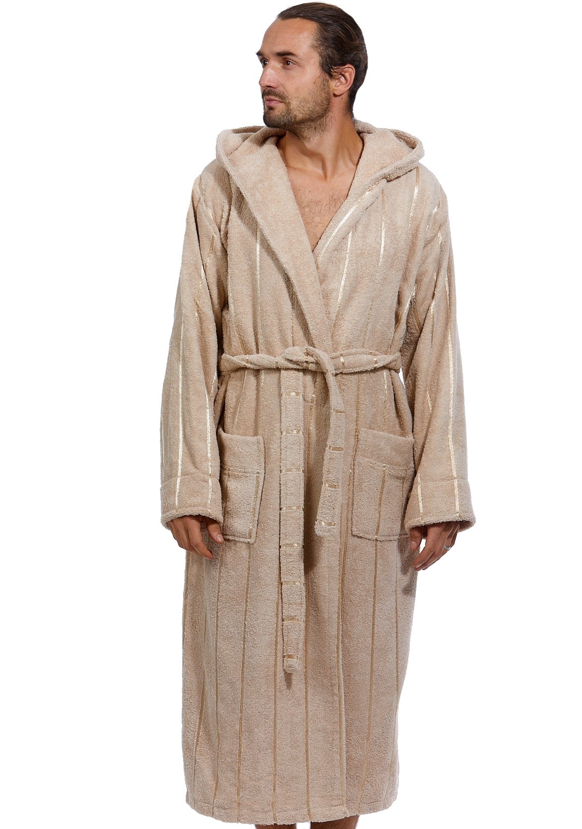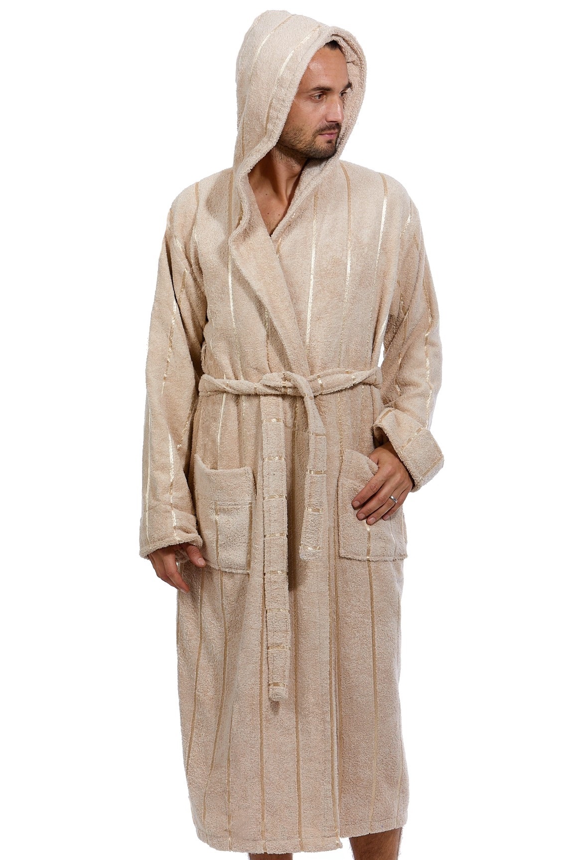 Béžový pruhovaný luxusní župan pro muže - Extra froté