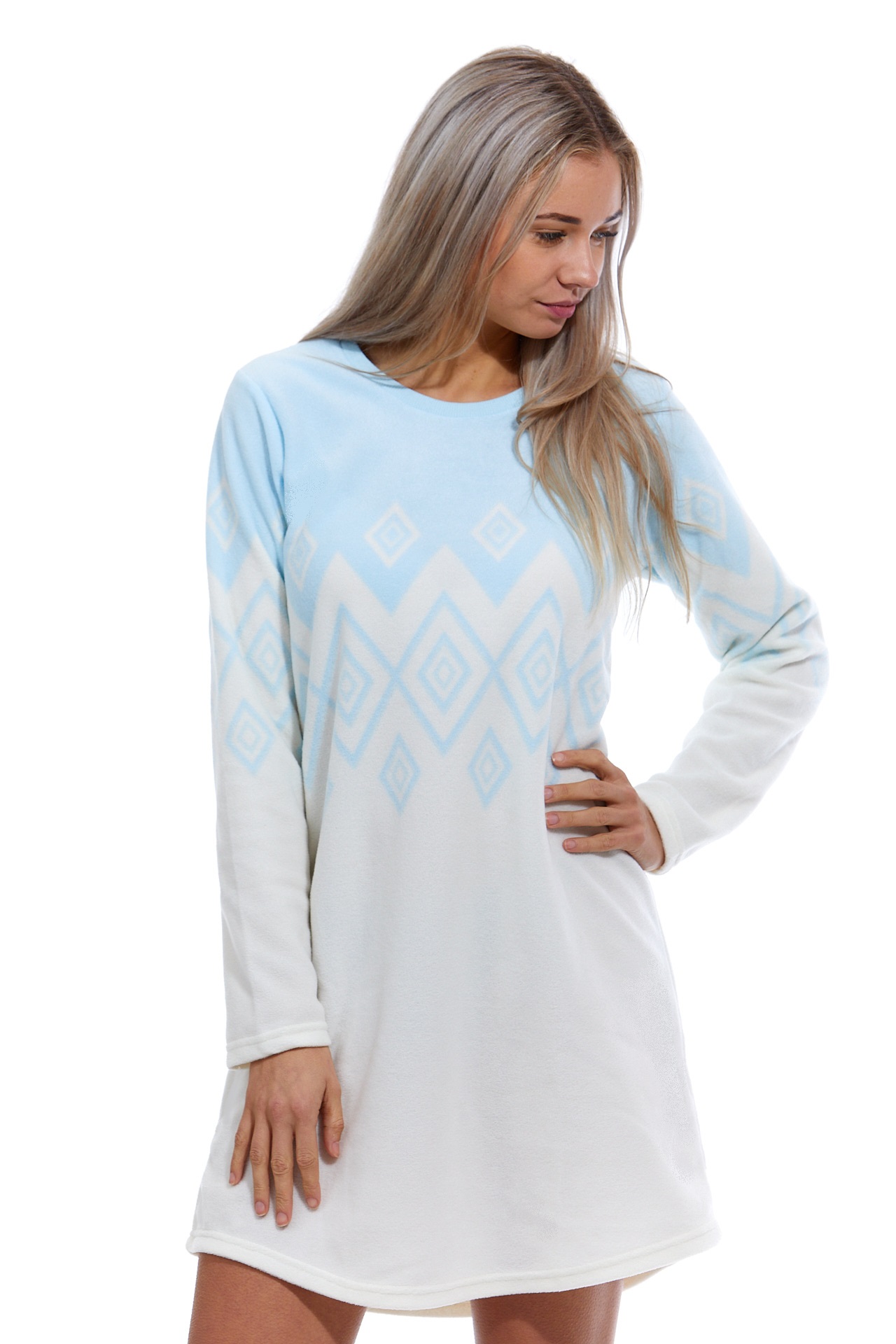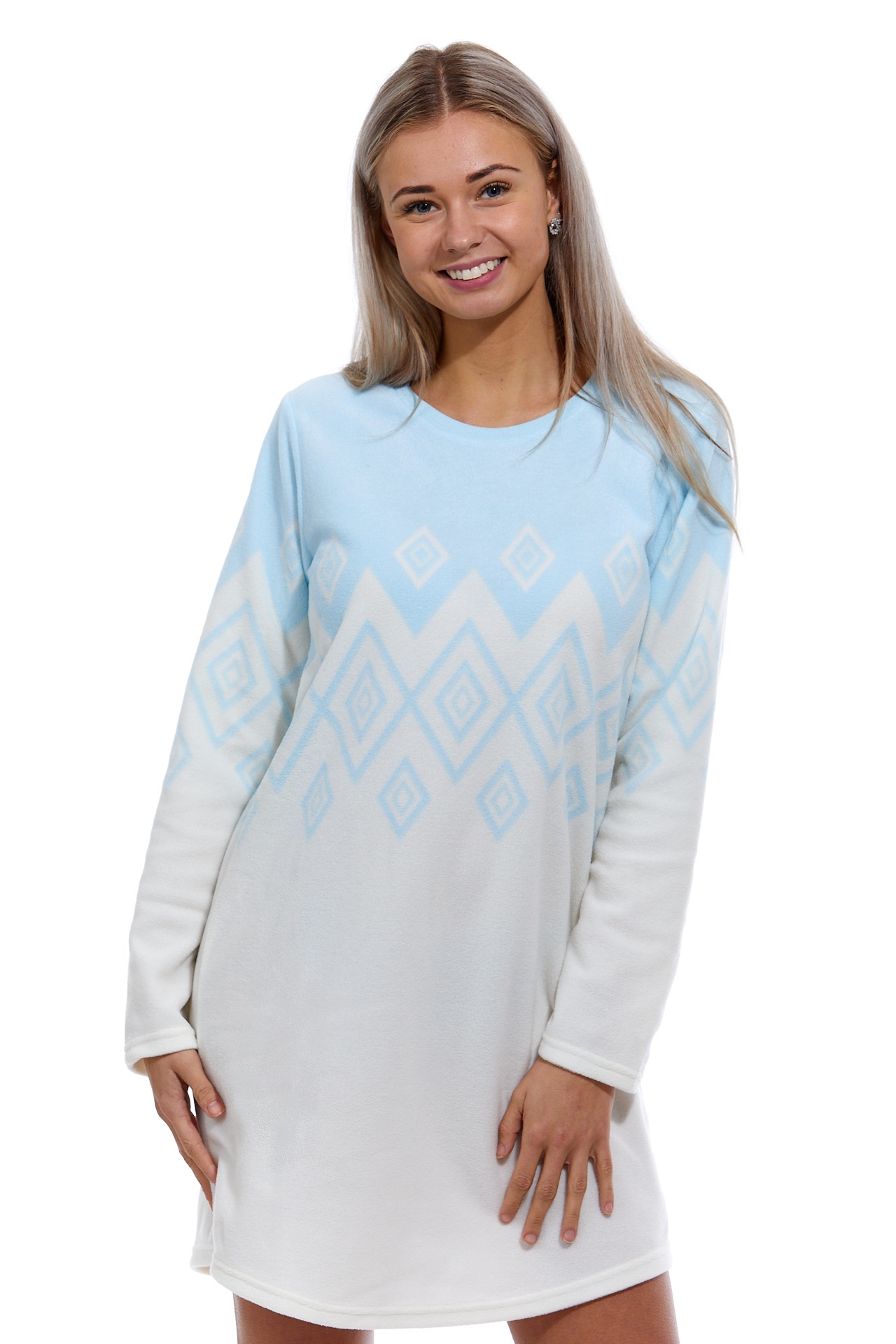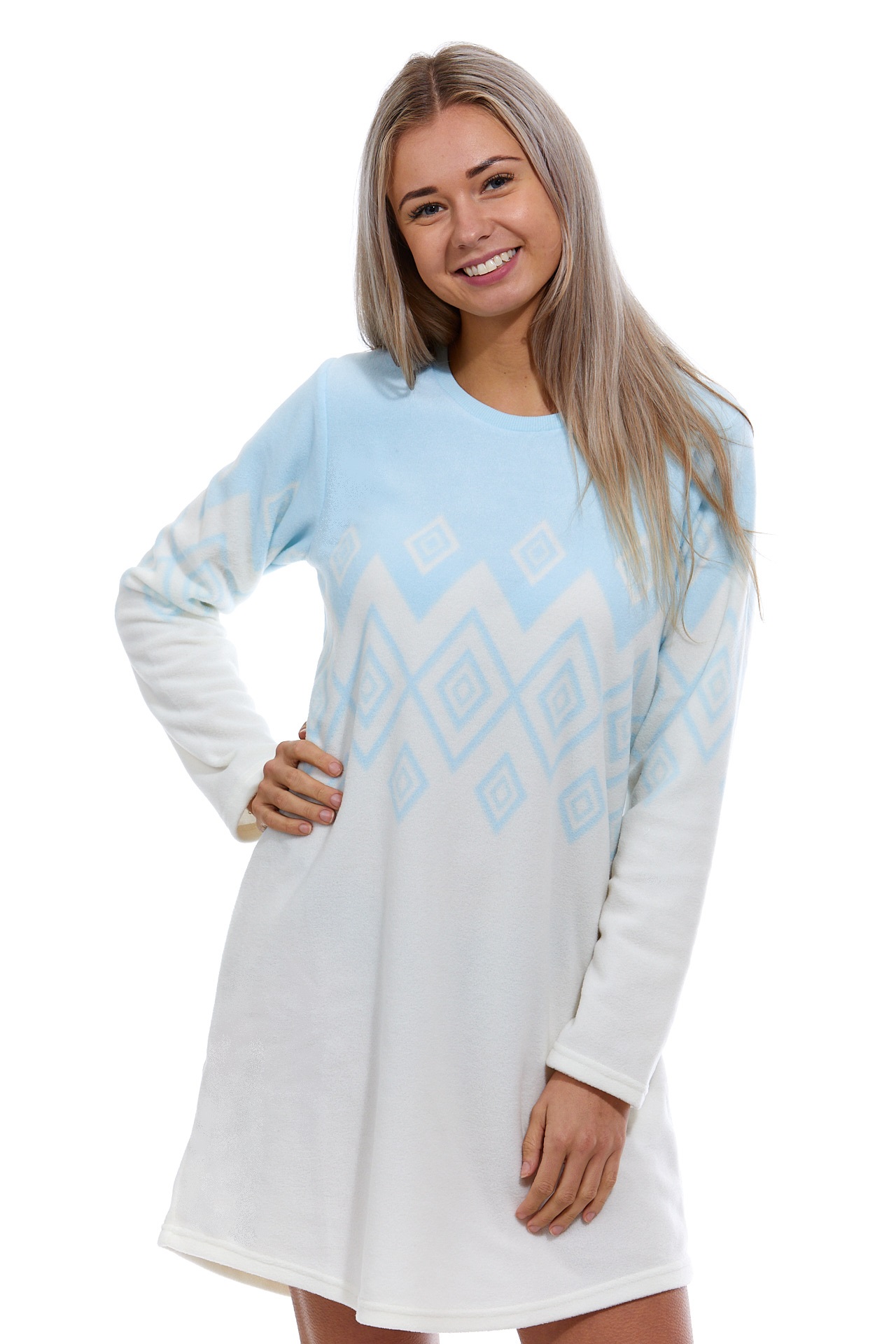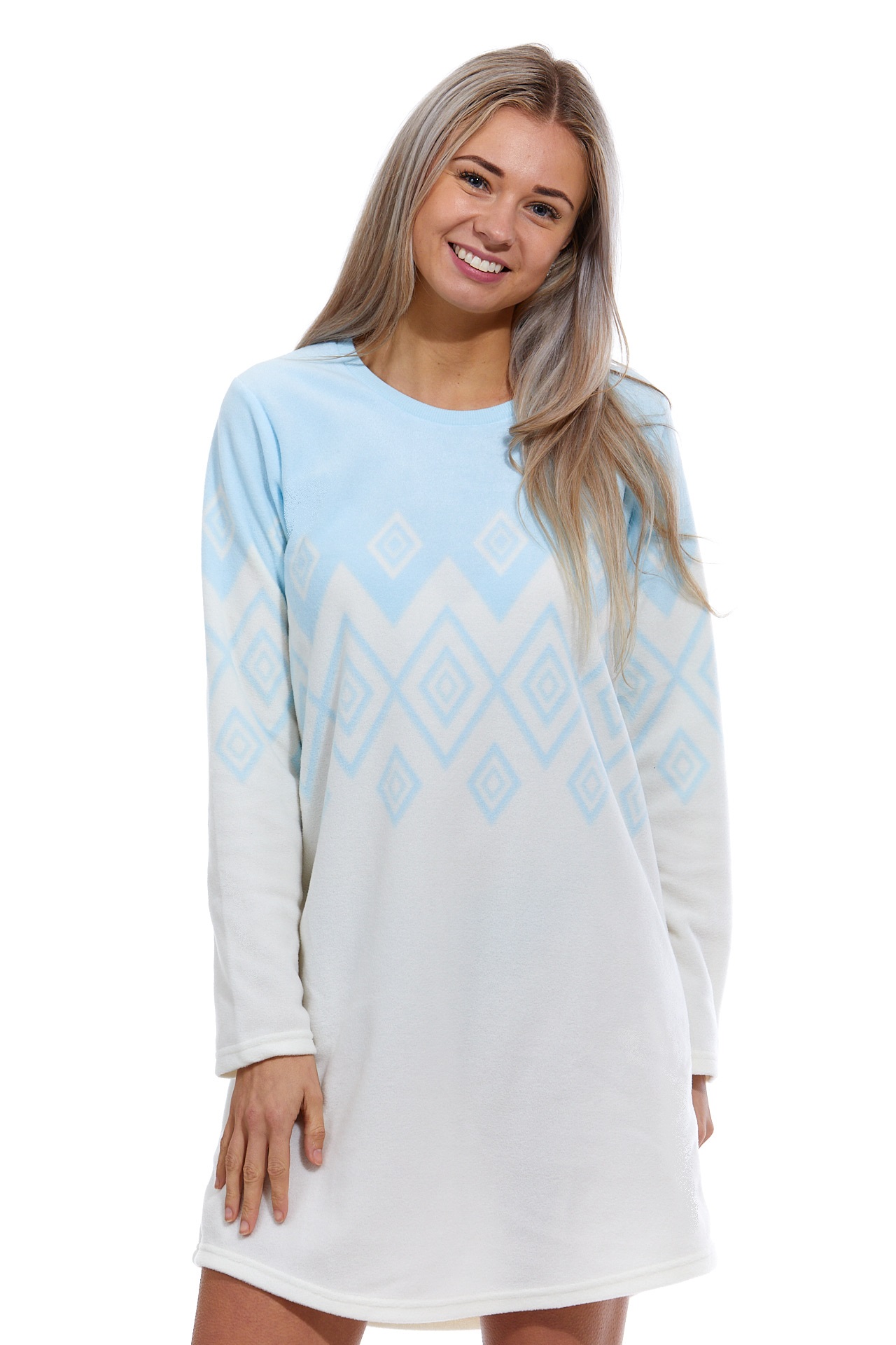 Bílá i modrá extra teplá košilka pro ženy či dívky LEDOVÝ NORSKÝ VZOR