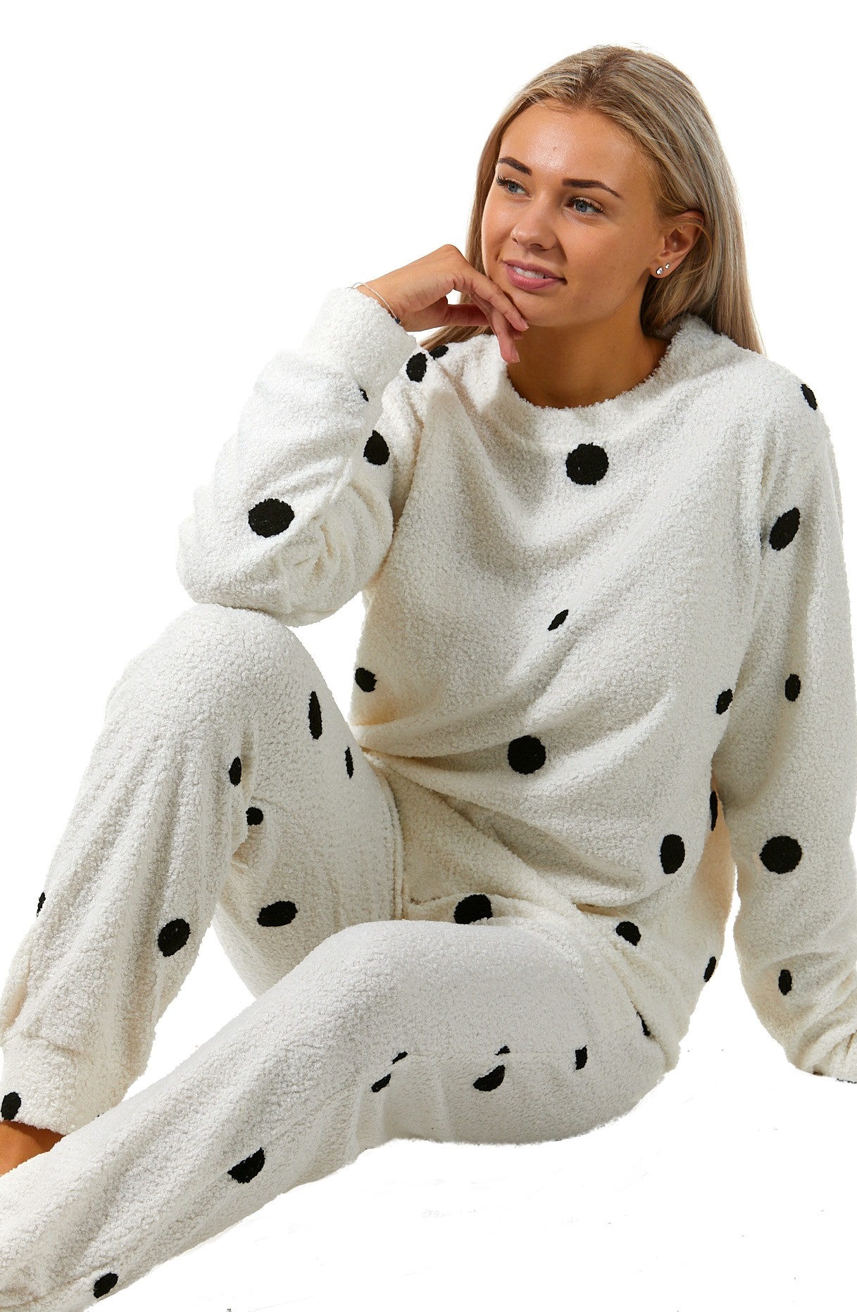 Bíločerná puntíkatá extra teplá souprava na zimu pro ženy či dívky