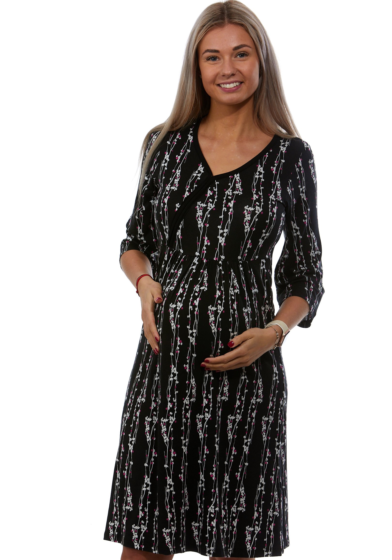 Černá, růžově i bíle květovaná luxusní jemná těhotenská i kojící košilka na zip