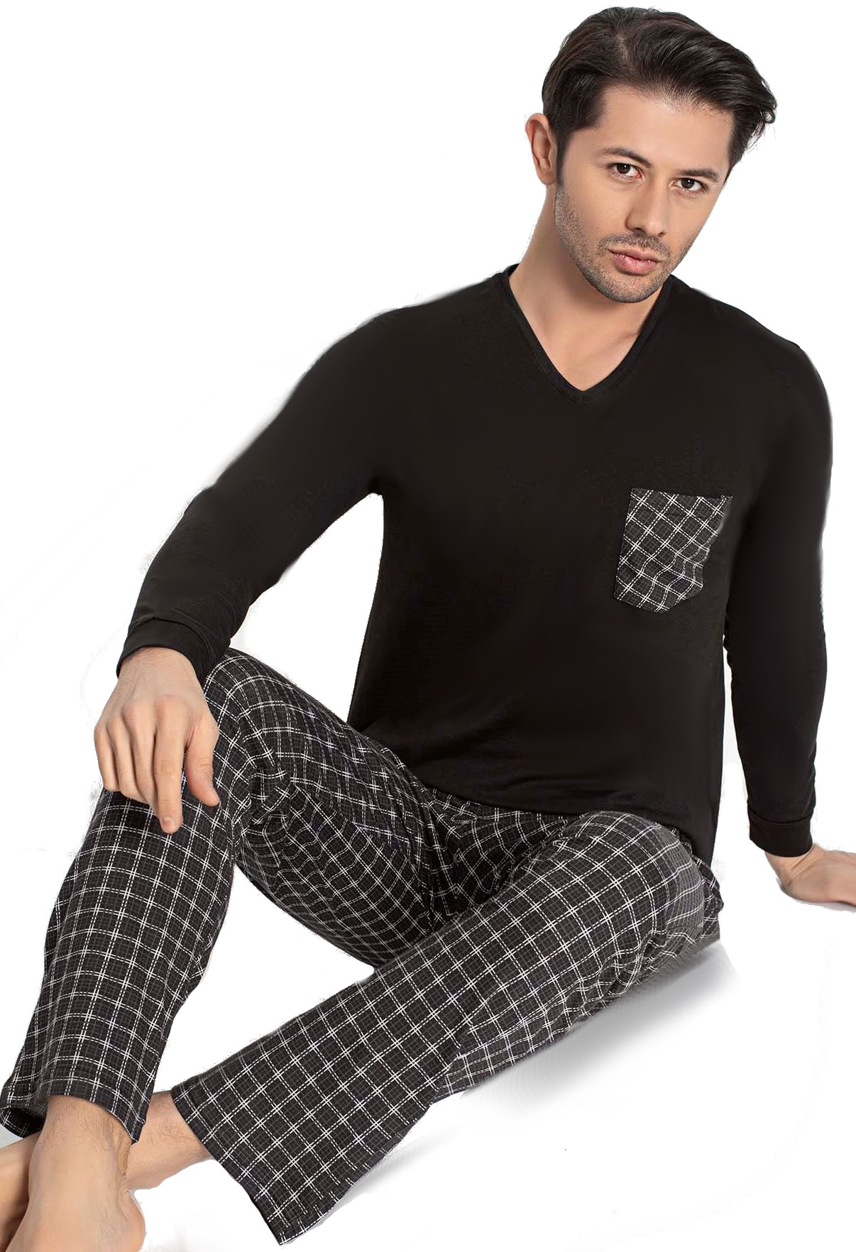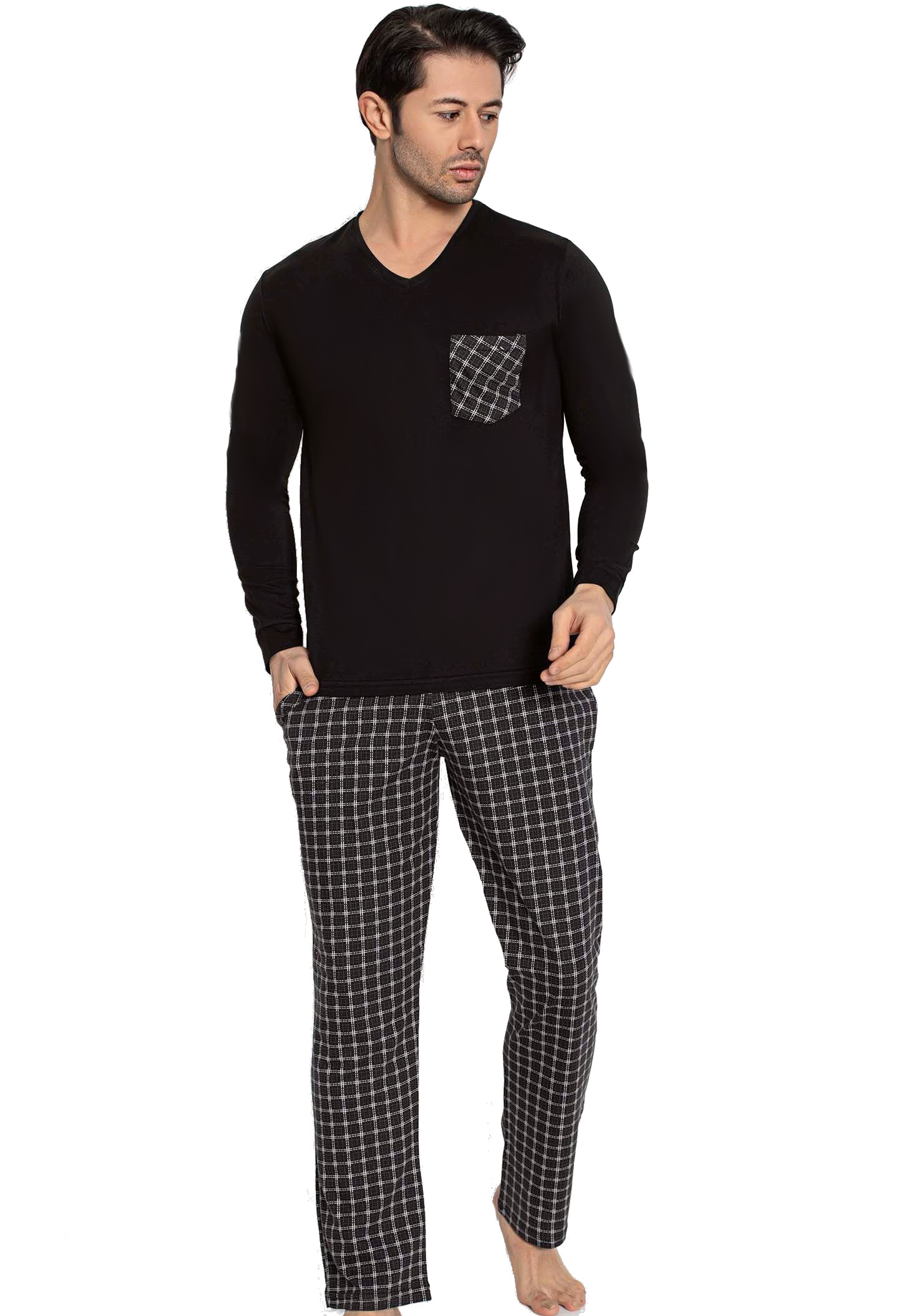 Černé a šedě kárované pyžamo pro muže bez nápisů