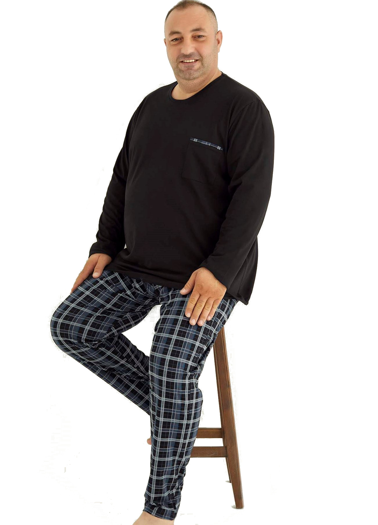 Černé i modro šedé kárované pyžamo pro plnoštíhlé muže