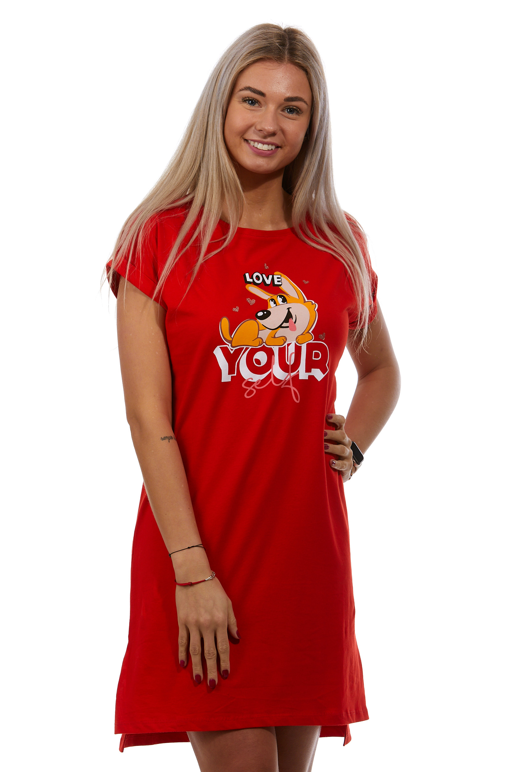 Červená noční košilka pro ženy či dívky MILOVNICE PEJSKŮ