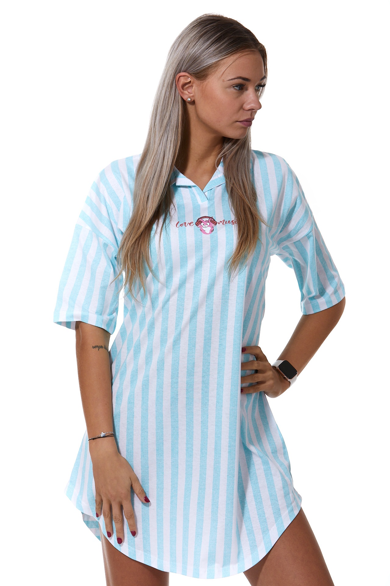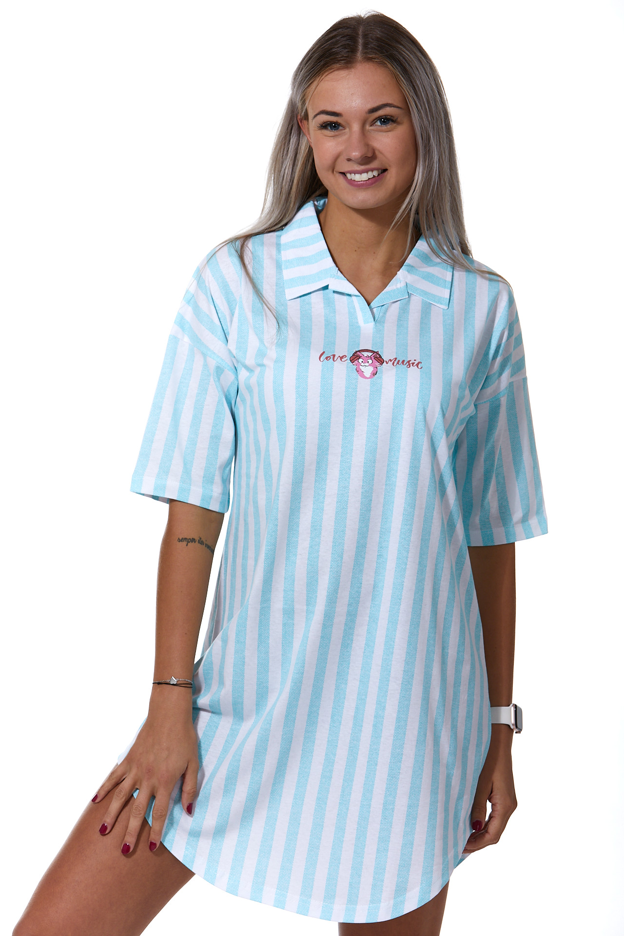Pruhovaná dámská noční košile Kočka miluje muziku 1C3067