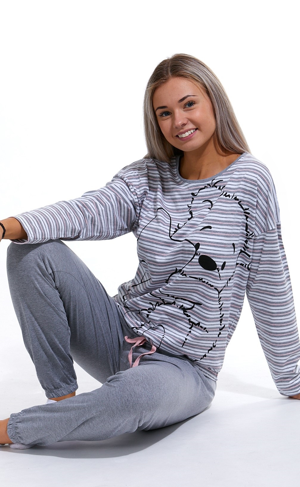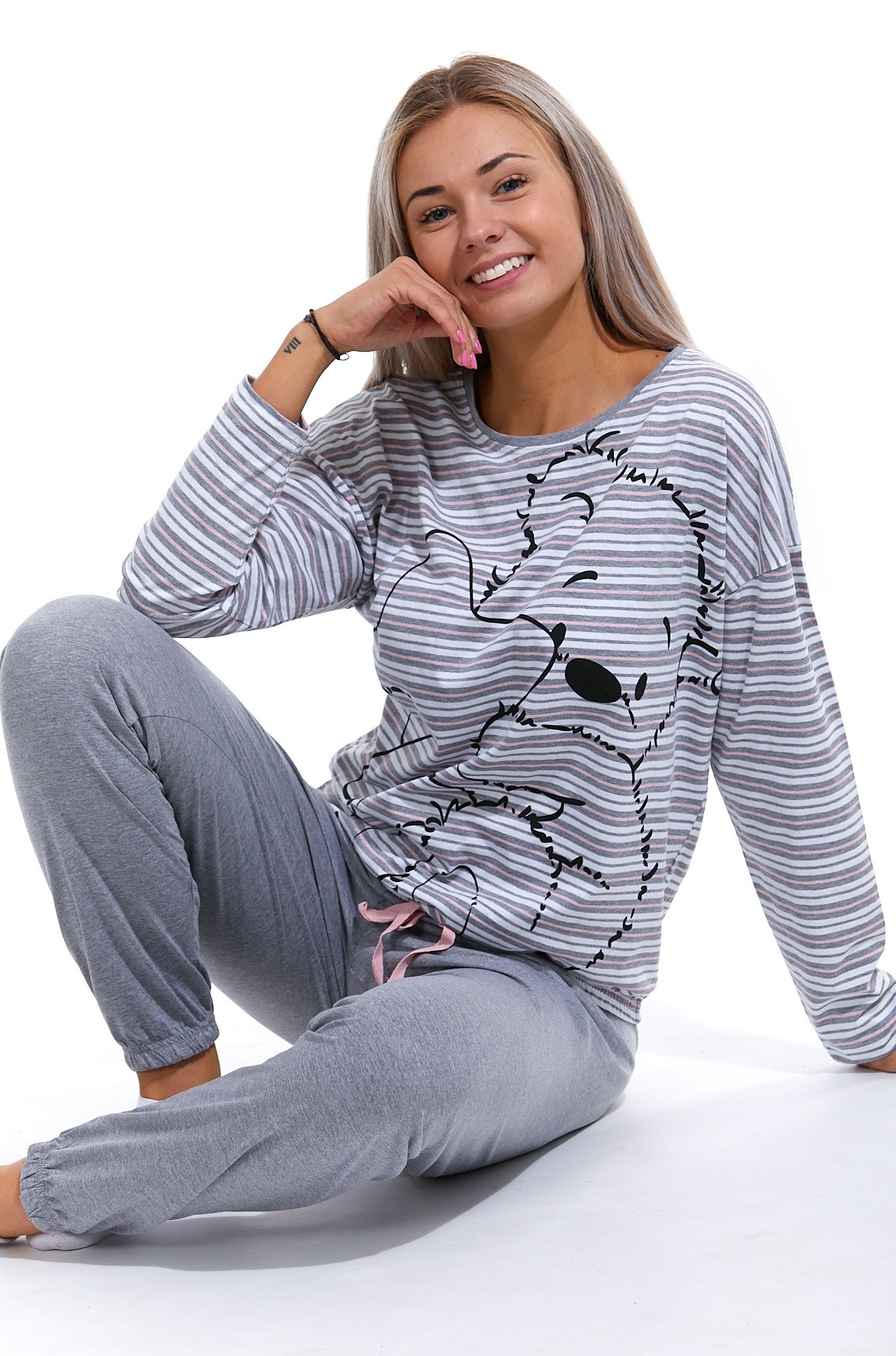 Pyžamo má dlouhý rukáv a dlouhou nohavici