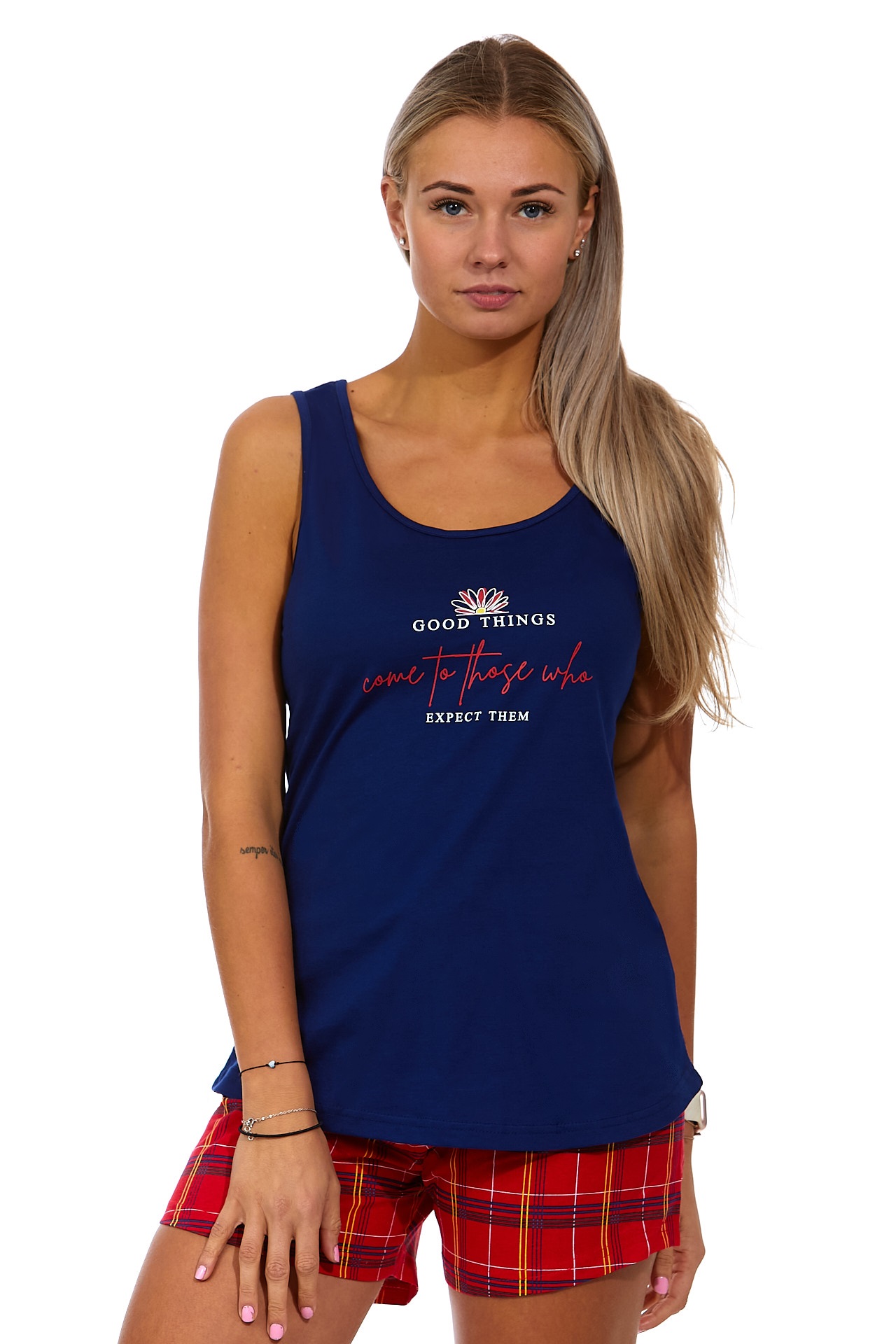 Modré i červené kárované dámské pyžamo Good Thigns