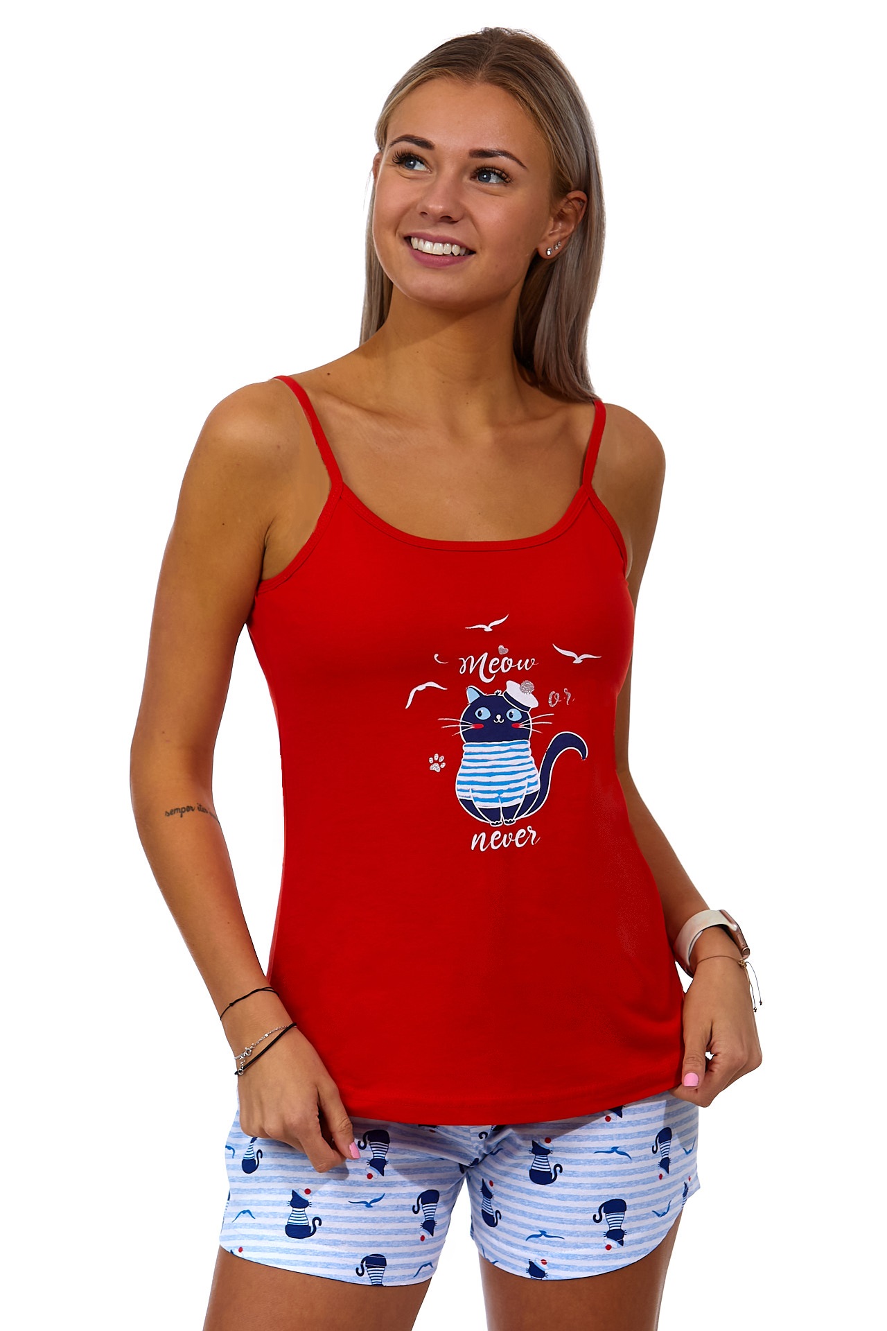 Červené a modré dámské pyžamo Kočičí námořník 1B1779