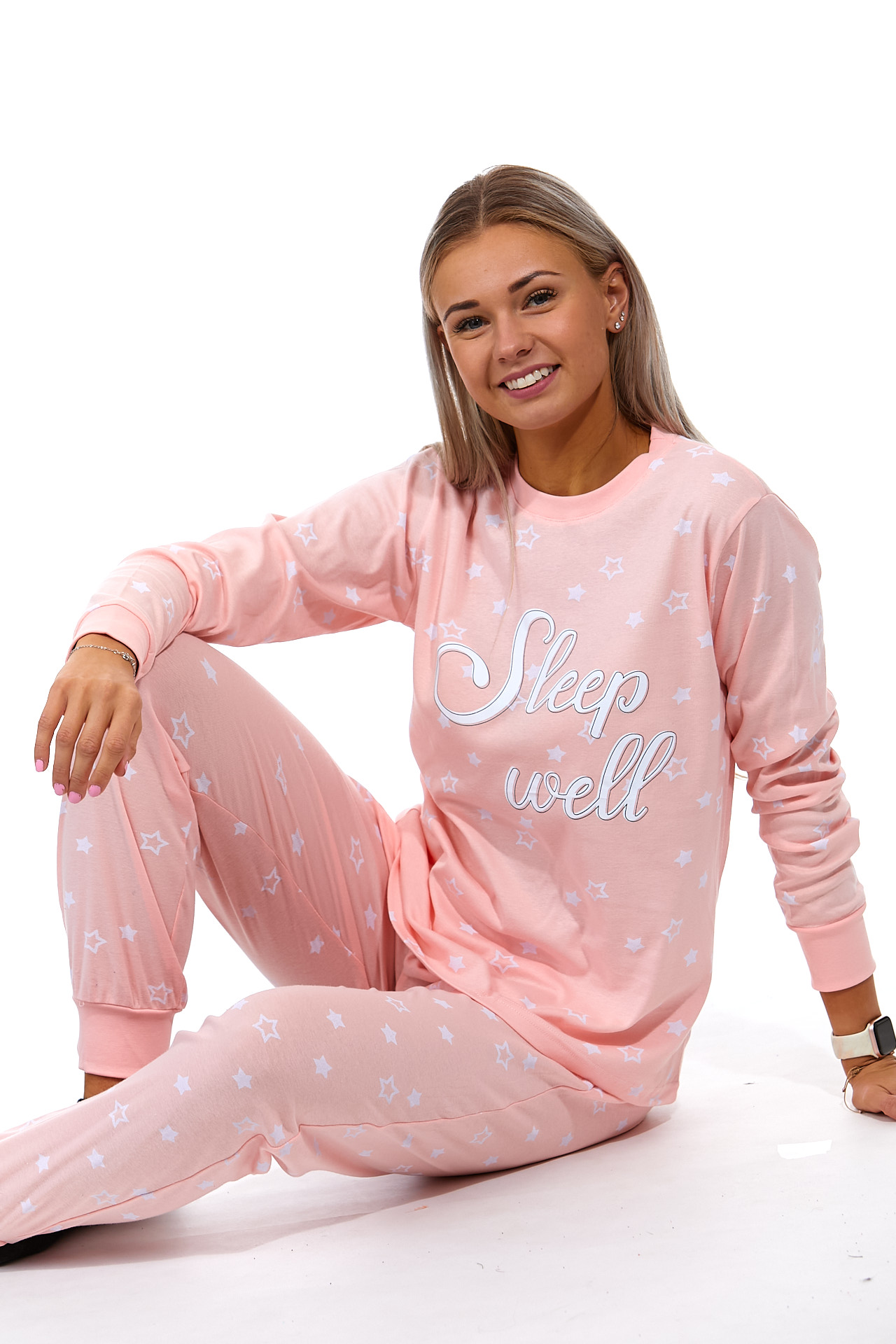 Meruňkové i bílé hvězdičkové dámské pyžamo Sleep well 1B1749