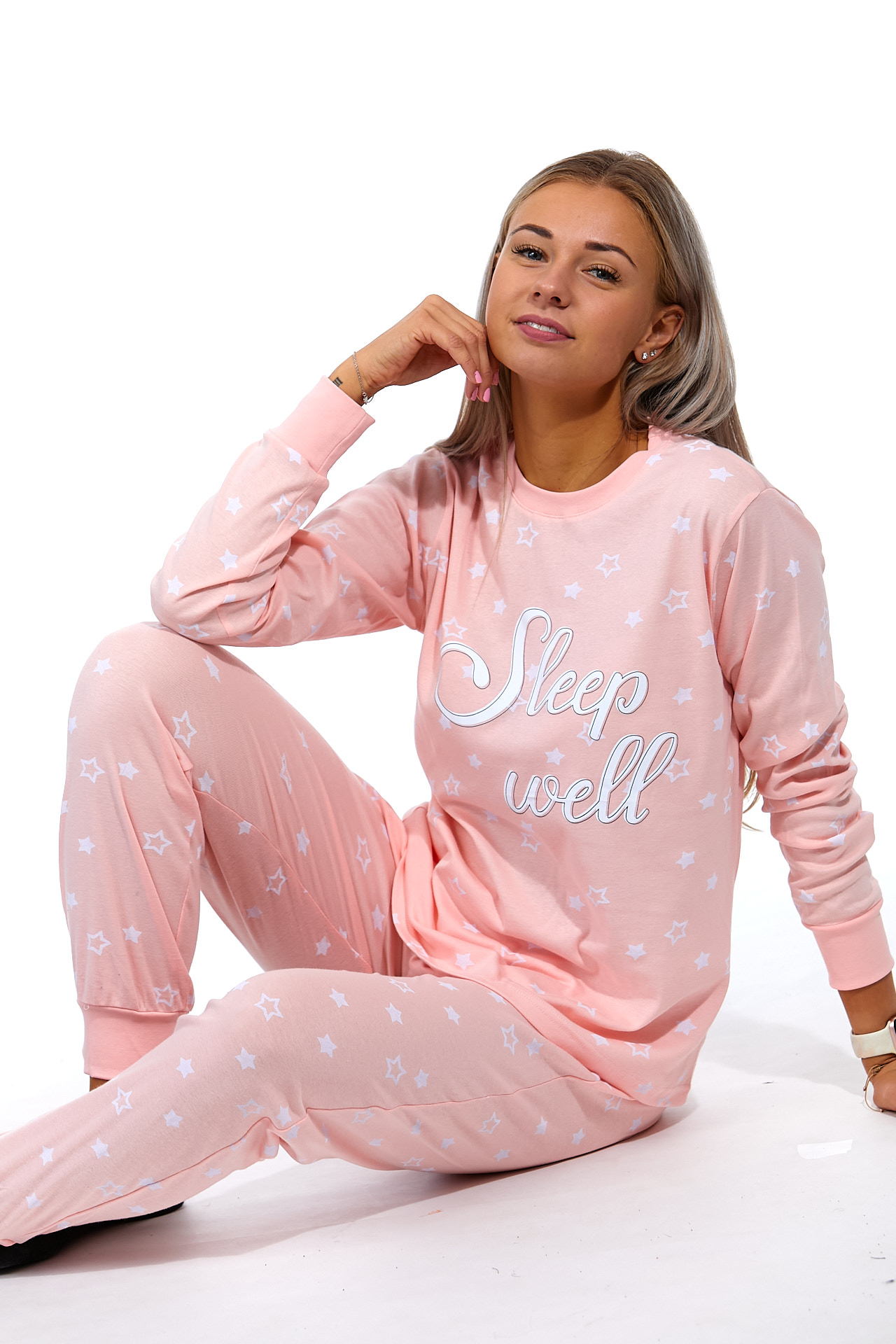 Meruňkové i bílé hvězdičkové dámské pyžamo Sleep well
