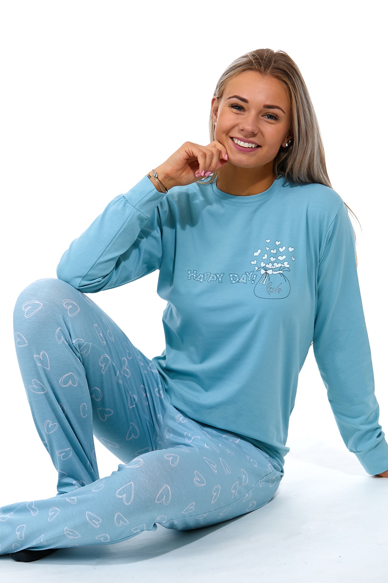 Nebesky modré srdíčkové dámské pyžamo HAPPY DAY