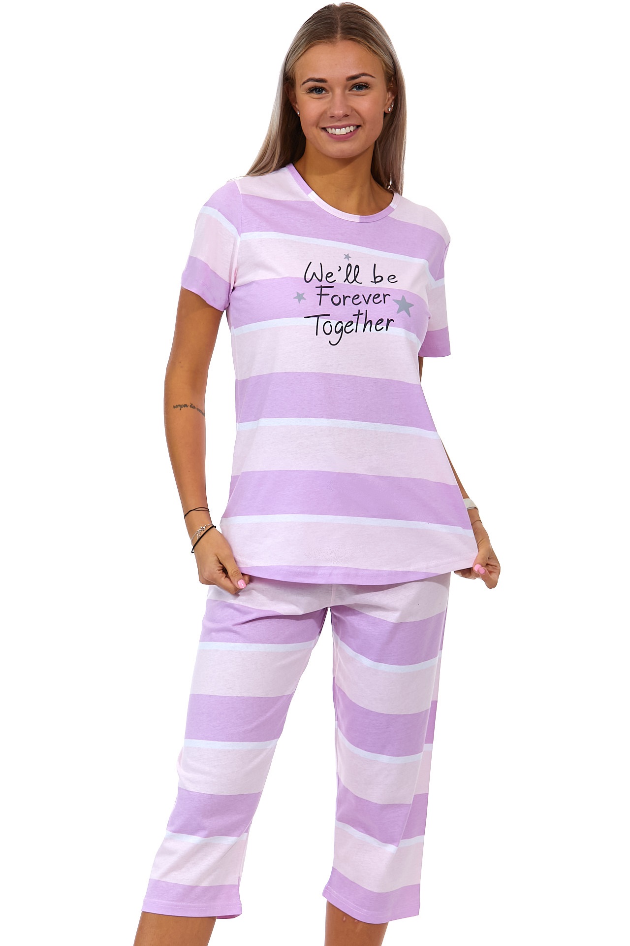 Fialové i růžové pruhované dámské pyžamo Capri Well be Forever Together 1B1774