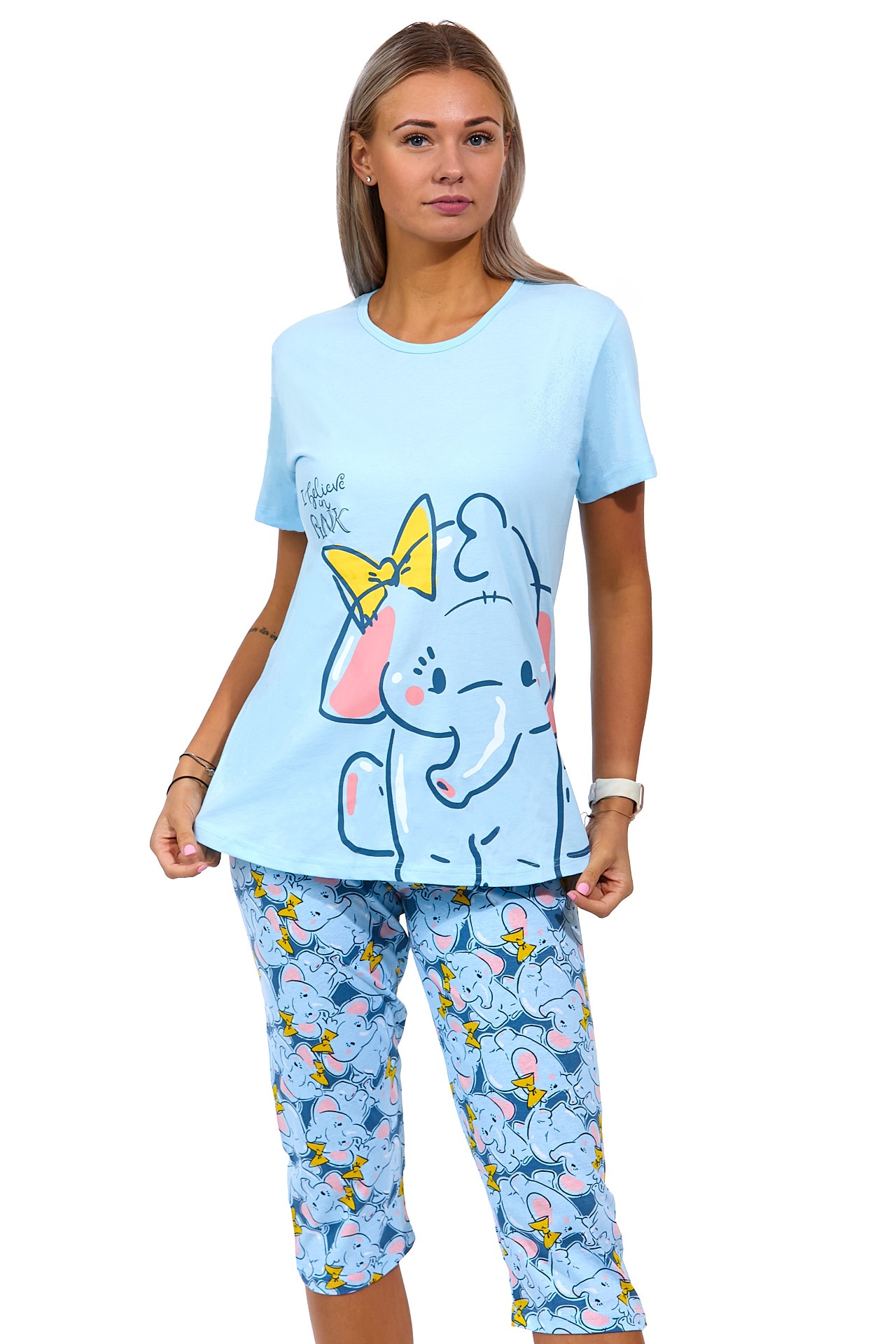 Nebesky modré dámské pyžamo Capri se Slonem