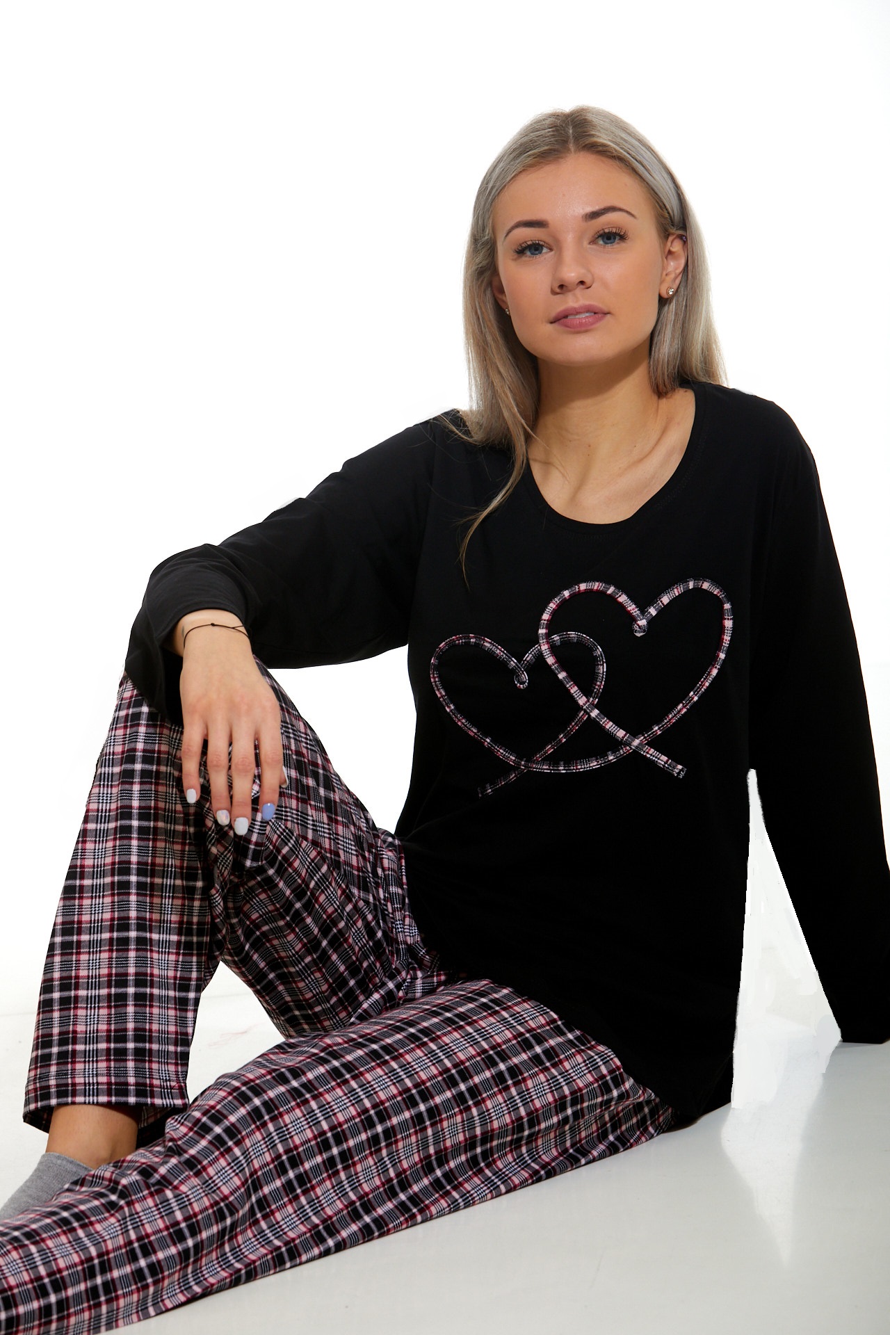 Pyžamo má dlouhý rukáv a dlouhou nohavici