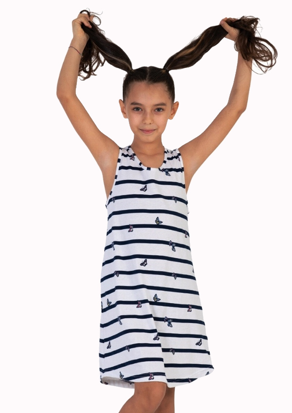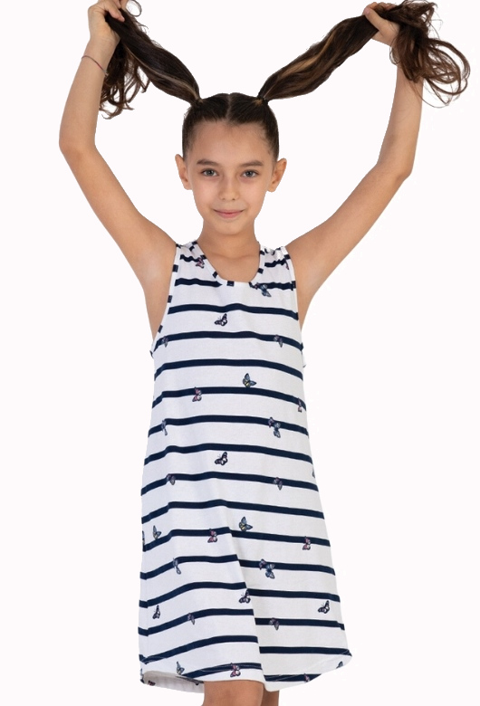Modro bílá námořnická pruhovaná dívčí noční košilka s motýlky