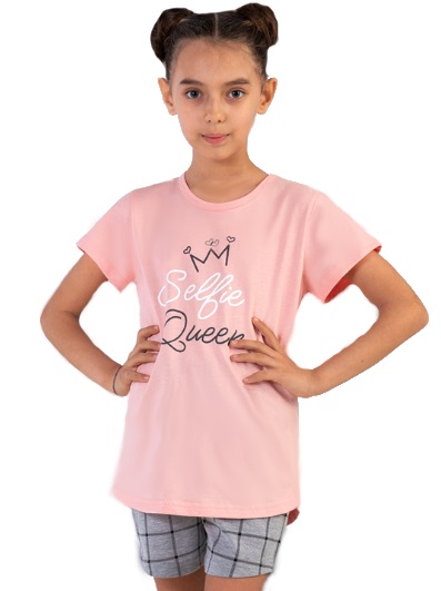 Růžové i šedé mřížkované dívčí pyžamo Selfie QUEEN