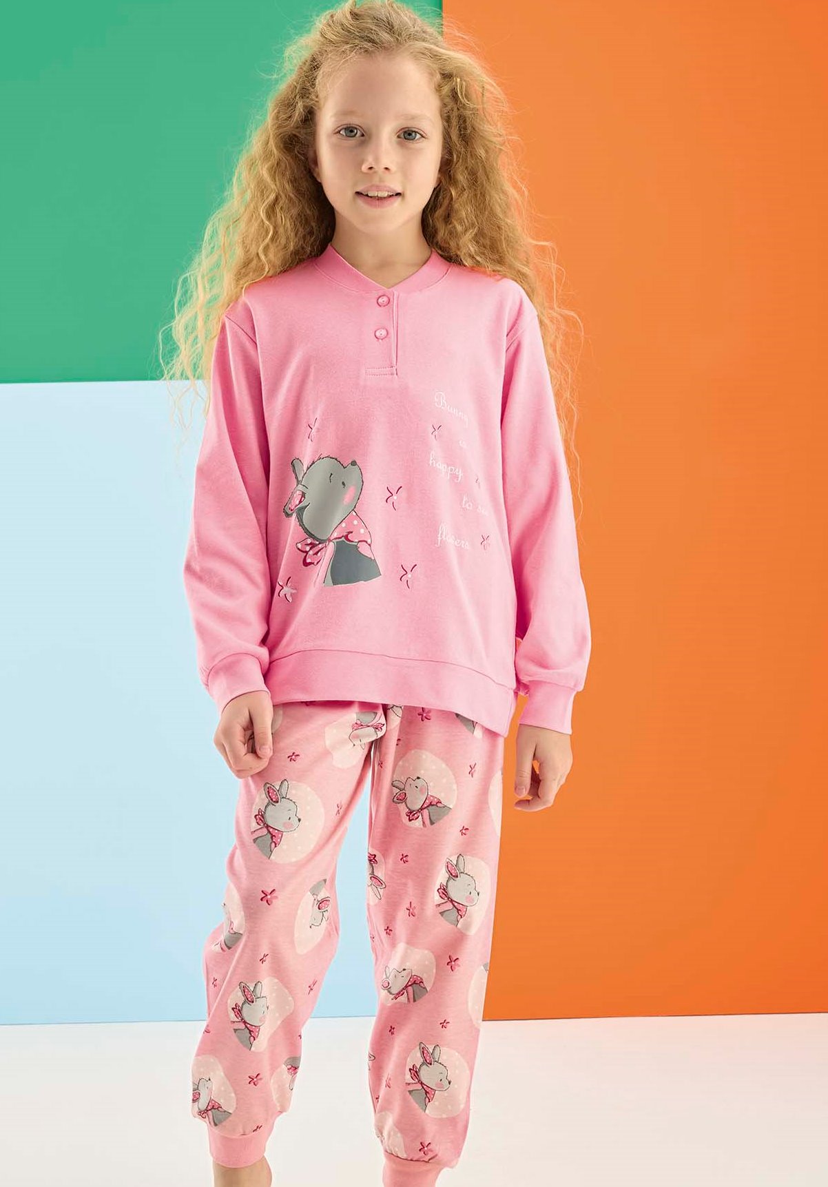 Růžové květinové dívčí pyžamo na knoflíky úžasný spinkací ušáček
