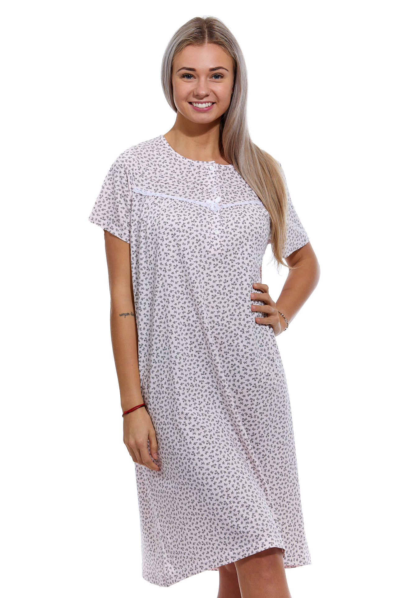 Dlouhá růžová květovaná noční košilka pro ženu na knoflíky s krajkou
