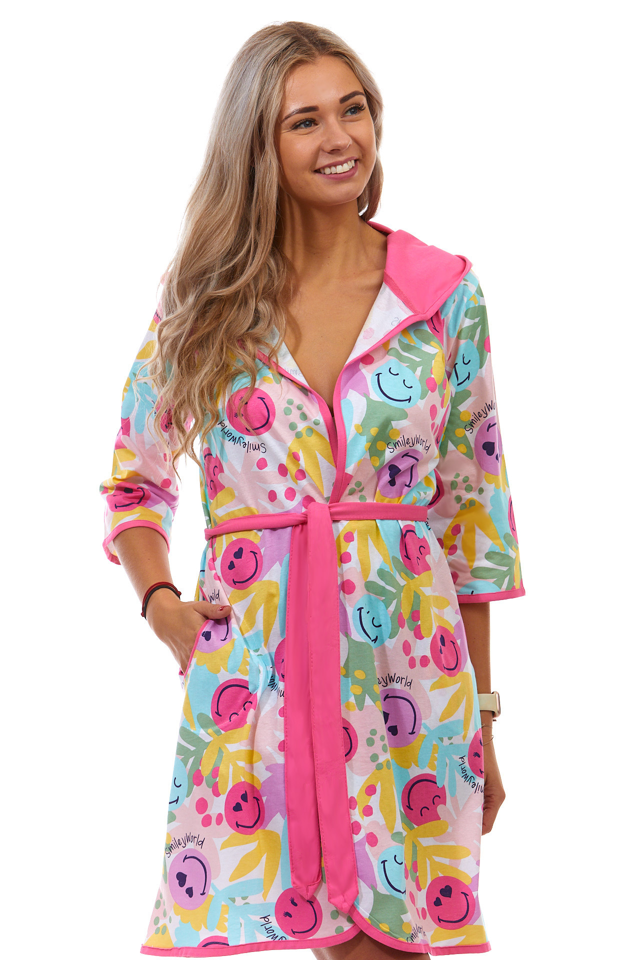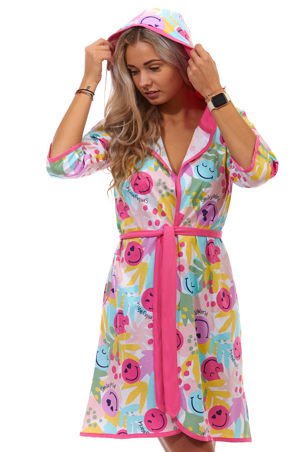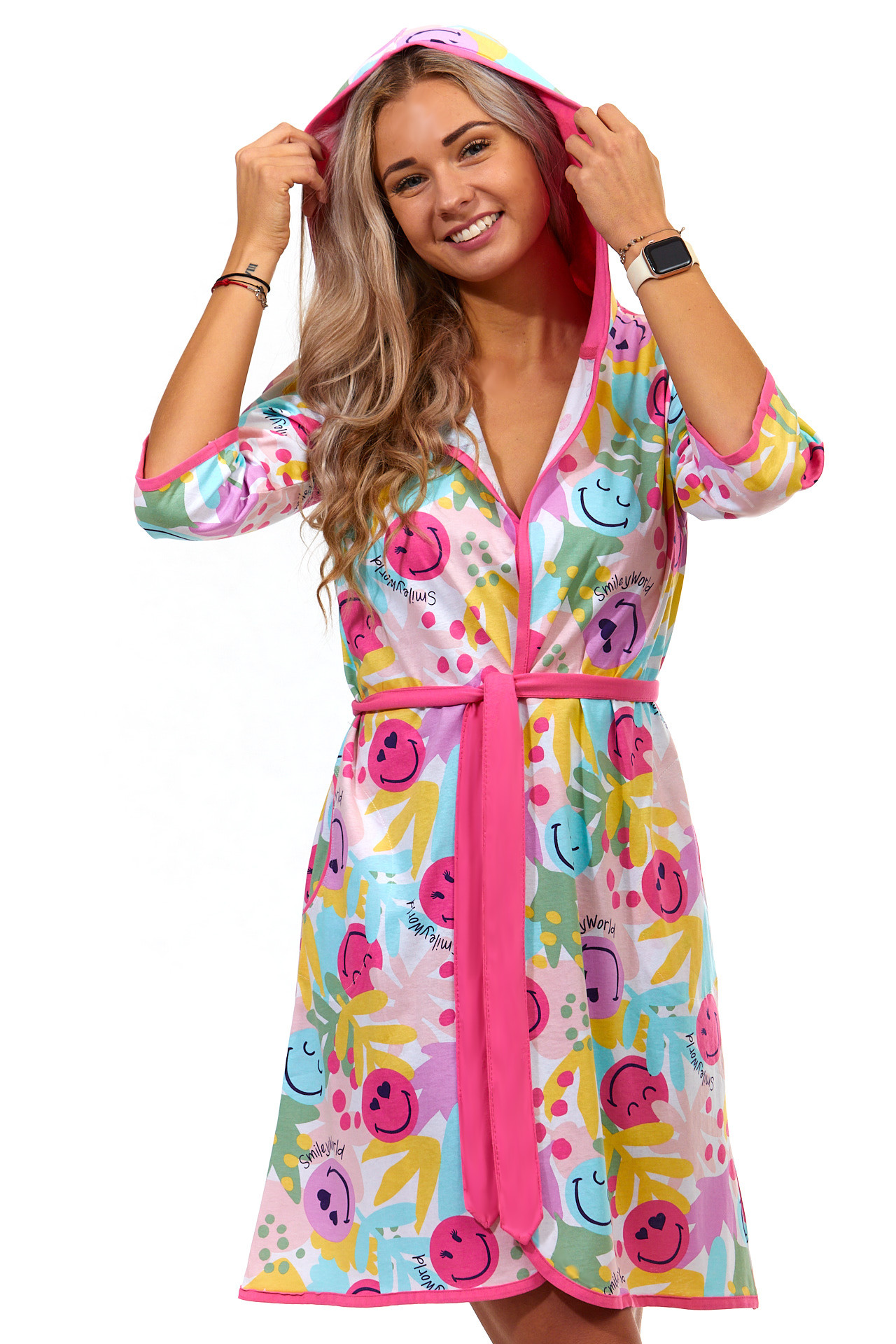 Duhově barevný lehký župan s kapucí pro slečny a ženy veselý smajlíci