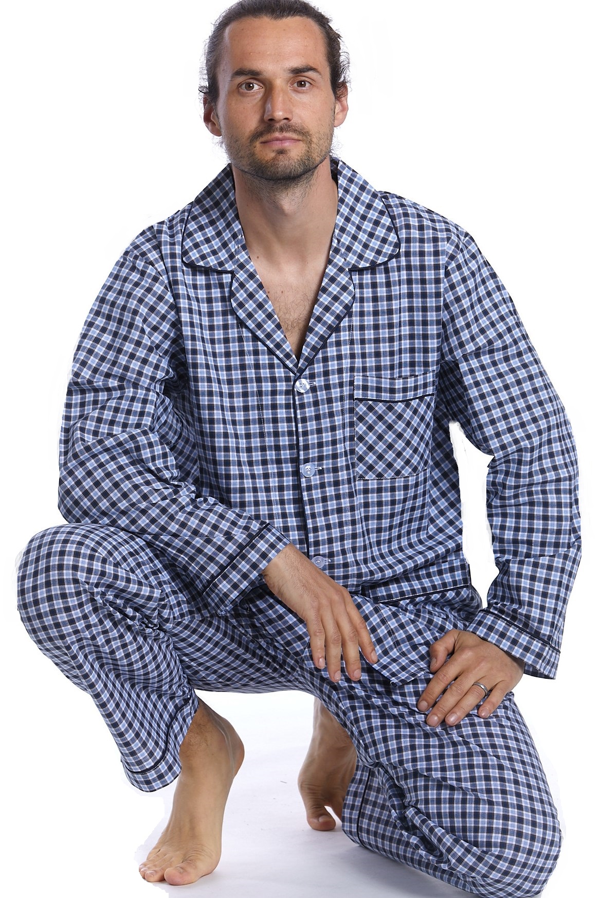 Modré kostkované elegantní límečkové pyžamo pro muže