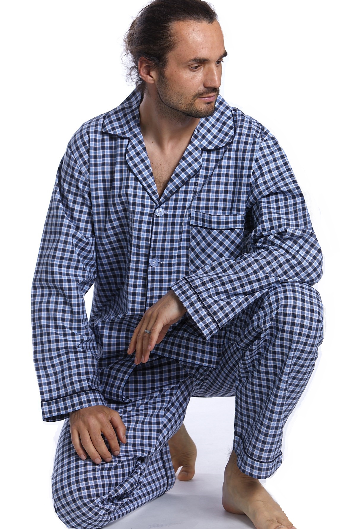 Modré kostkované elegantní límečkové pyžamo pro muže 1PF0049