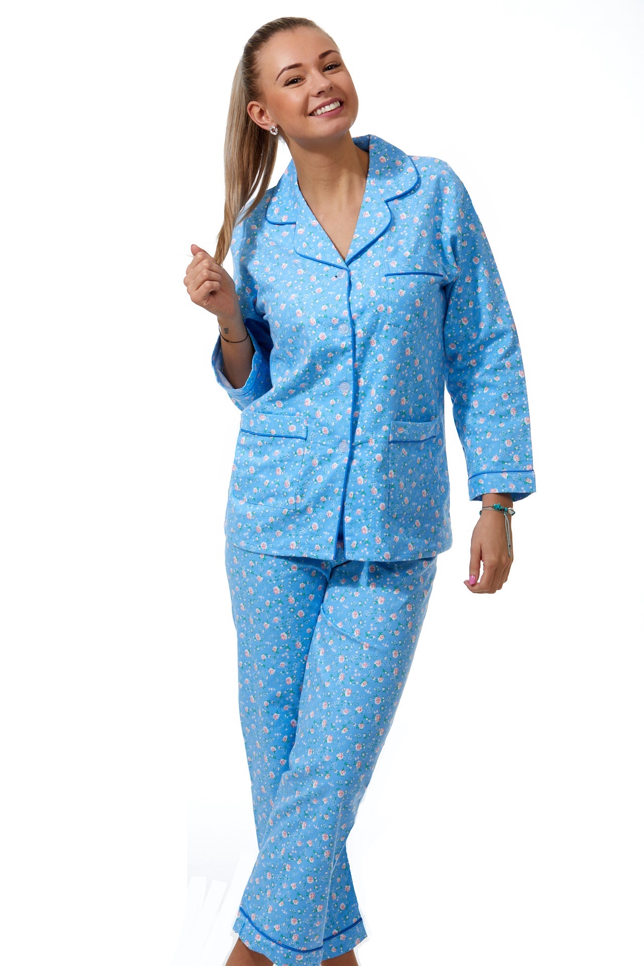 Pyžamo dámské z dlouhými rukávy a kalhot dlouhé délky
