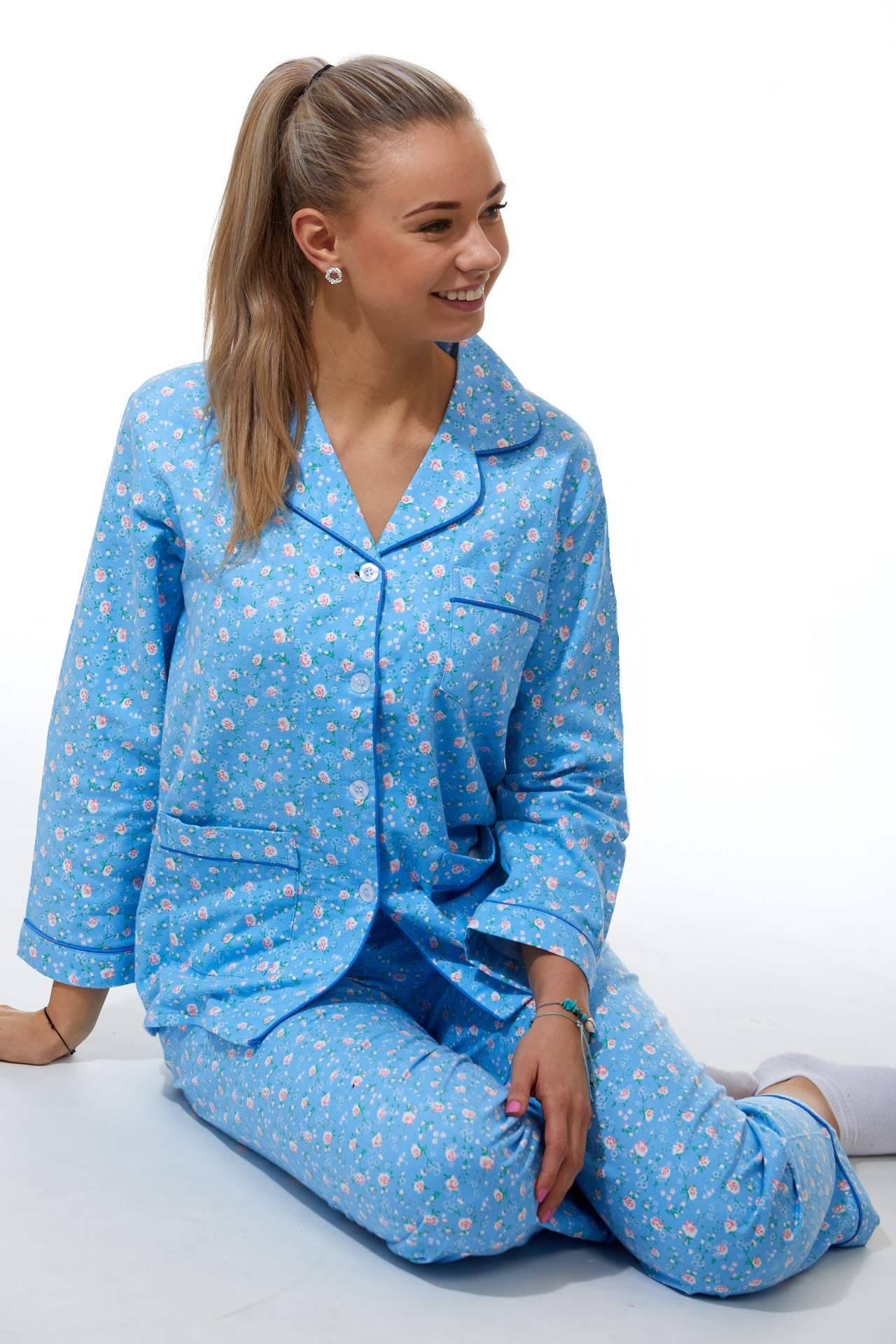 Luxusní pyžamo dámské na kojení z teplého flanelu z ušlechtilé bavlny