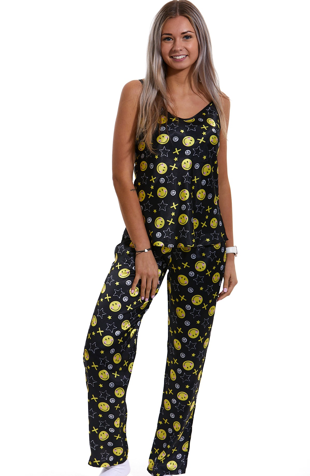 Smajlíkové elegantní pyžamo z luxusního saténu černo-žluté