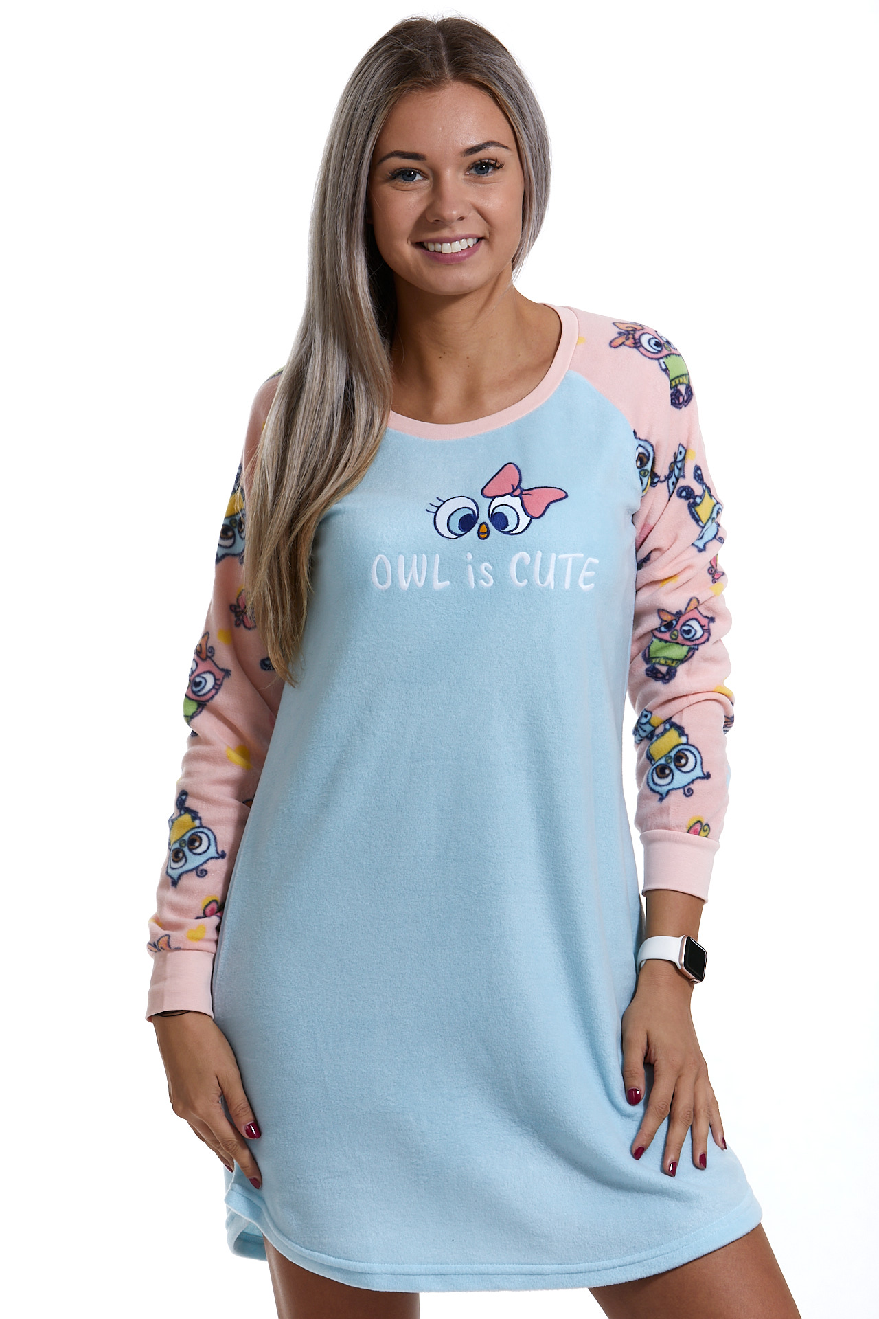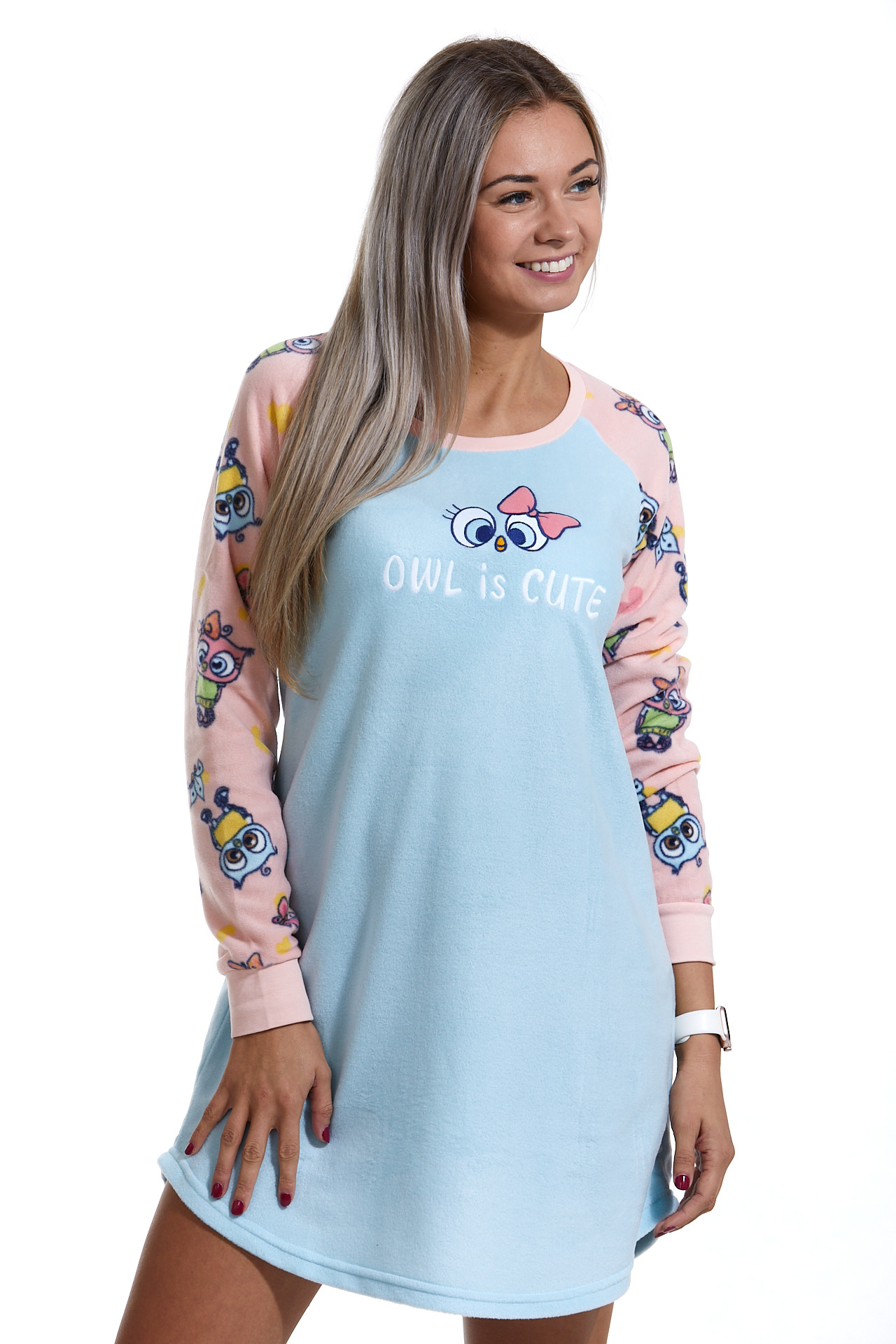 Modrá a růžová extra teplá košilka pro ženy se sovičky