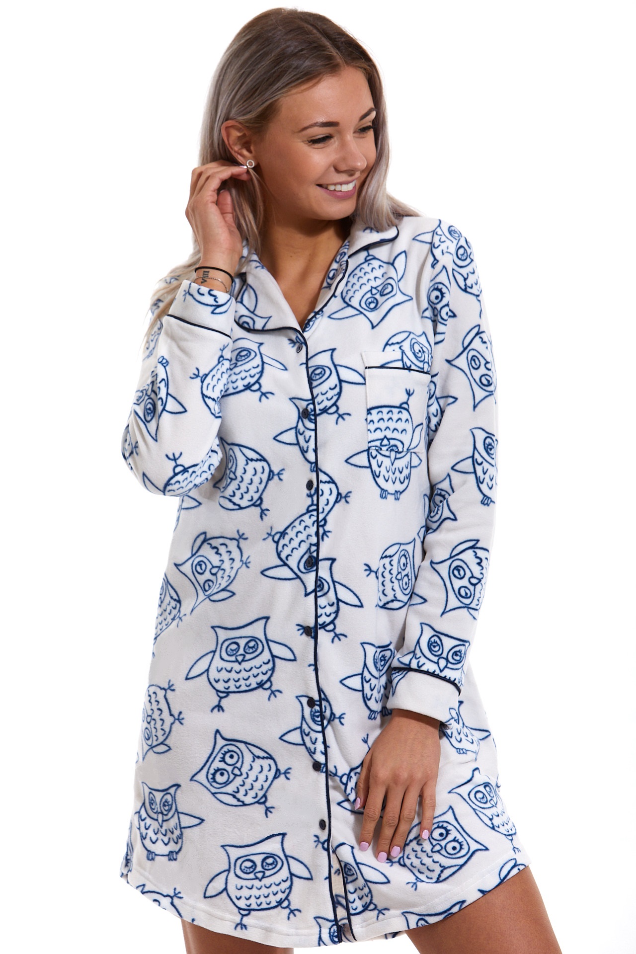 Extra teplá košilka pro ženy celopropínací na knoflíky s límečkem, Sovičky