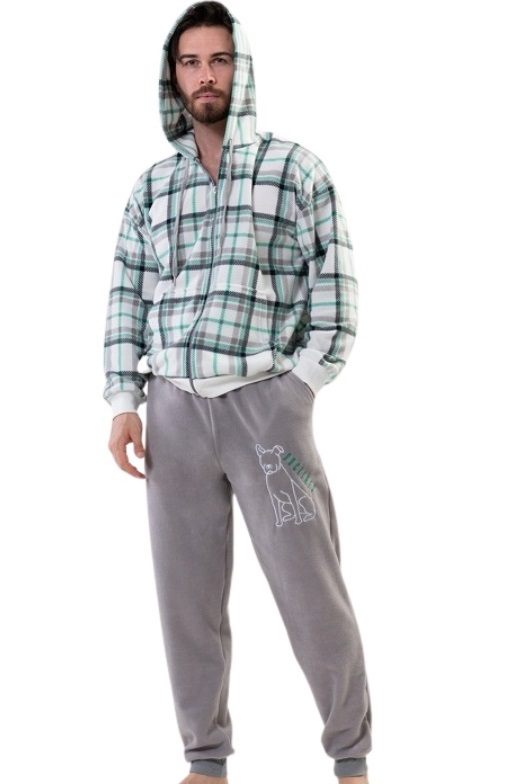 Kárované extra teplé pánské pyžamo, Dog timer - propínací na zip