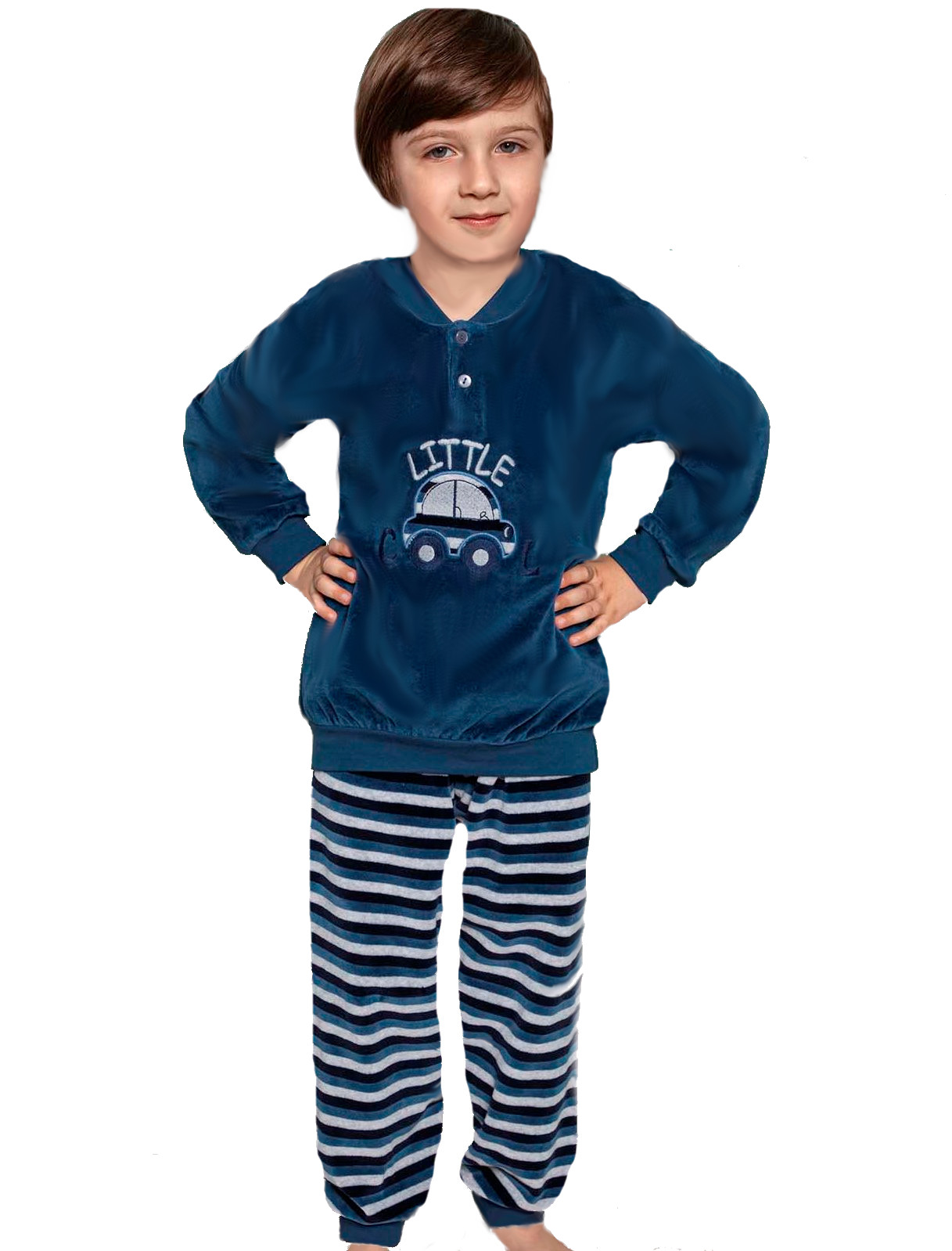Nádherné chlapecké pyžamo ze sametu na knoflíčky, rukávy a nohavice jsou do nápletu.
