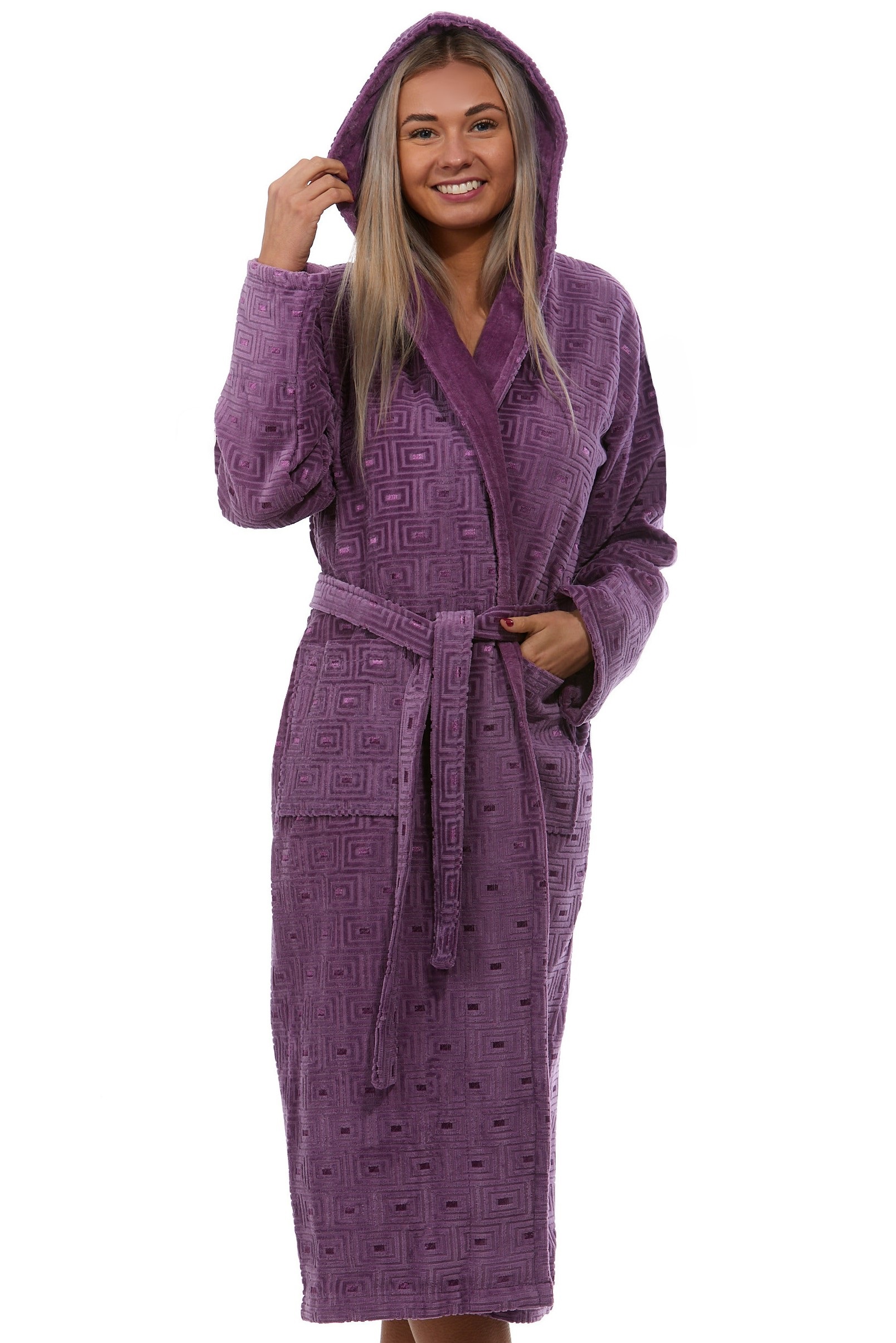 Fialový luxusní dlouhý župan pro ženu z extra froté LABYRINT 1ZF3020