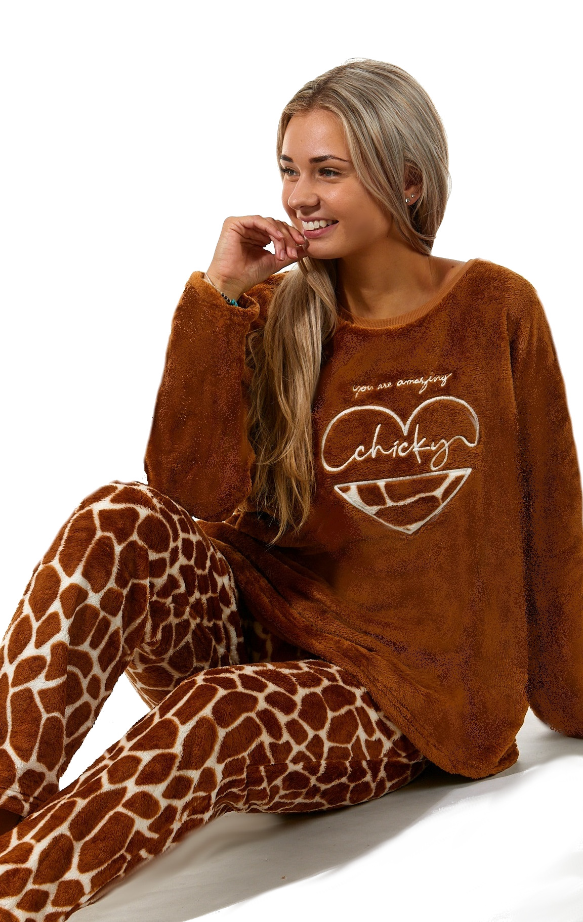 Hnědá žirafí extra teplá souprava na zimu pro ženy 1Z1483