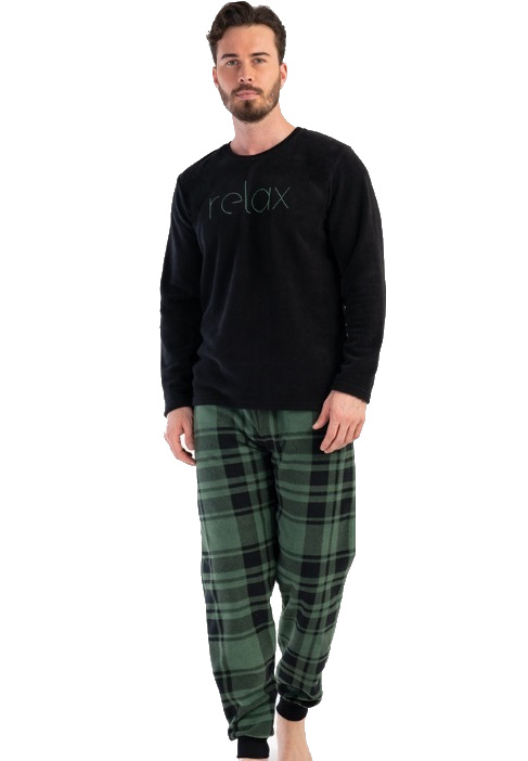 Černé i zeleně kárované úžasně hřejivé pánské pyžamo RELAX