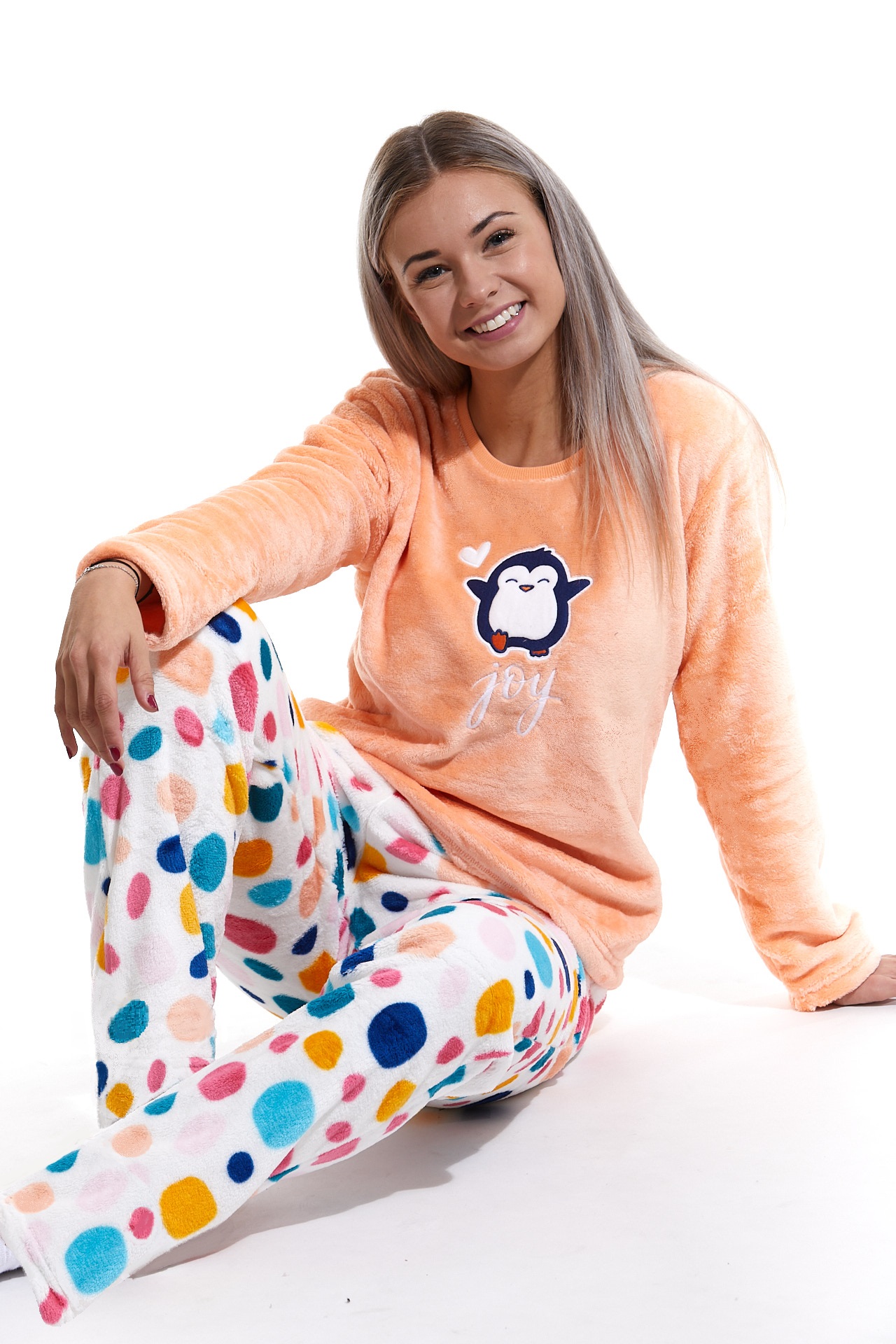Huňaté duhové pyžamo na zimu pro ženy, Tučňáček JOY