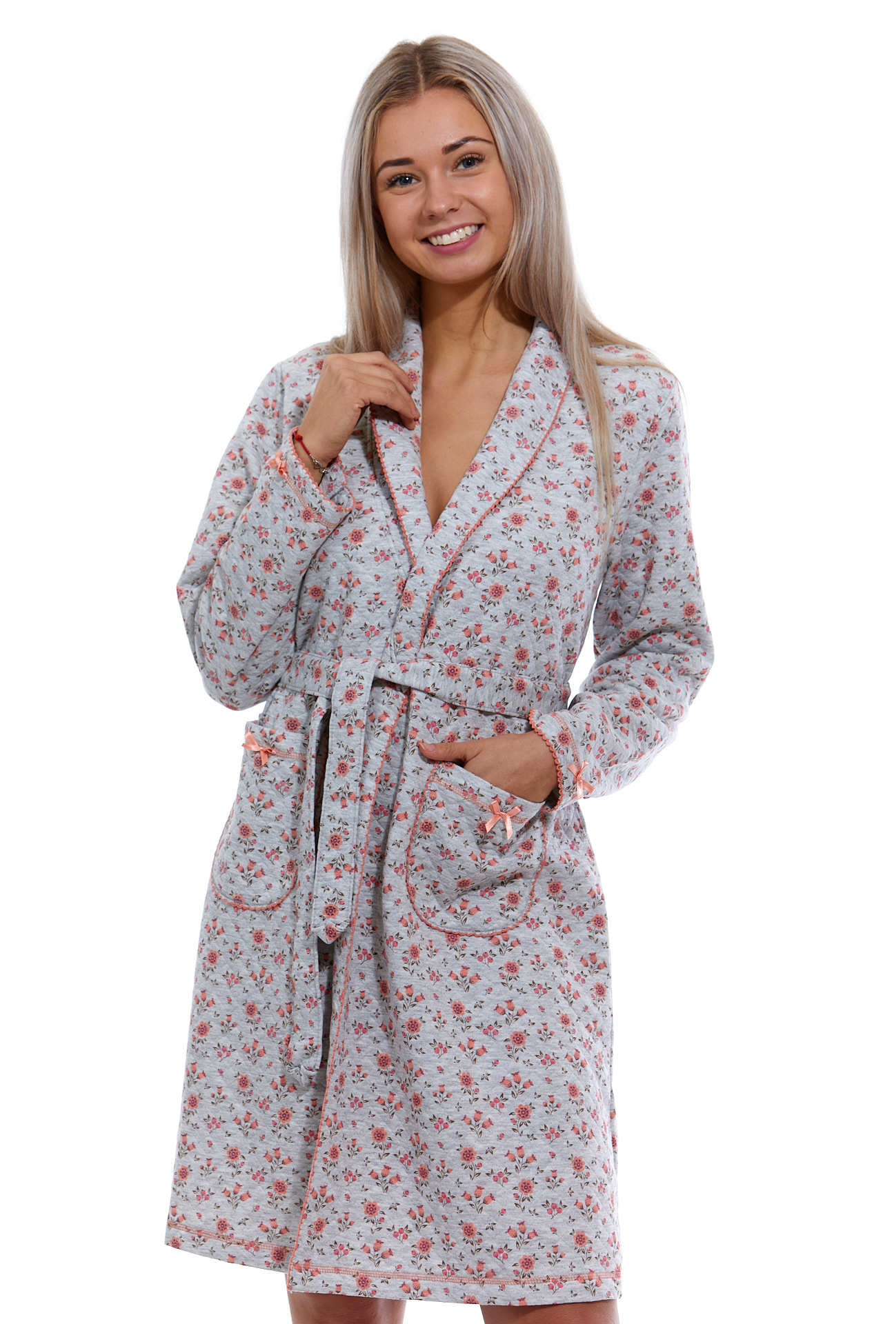 Jahodově červený i šedý romantický luxusní květovaný župan pro ženy DARTS 1G0512