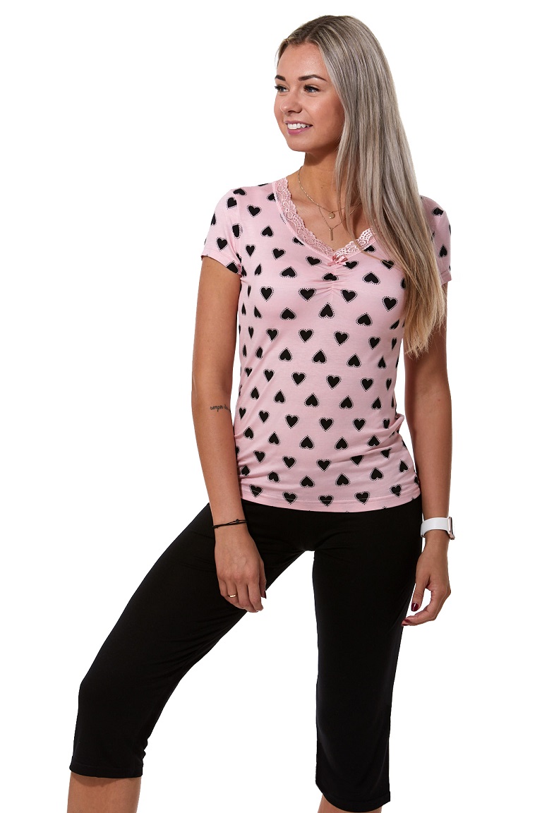 Luxusní dámské pyžamo s krátkým rukávem a 3/4 kalhoty