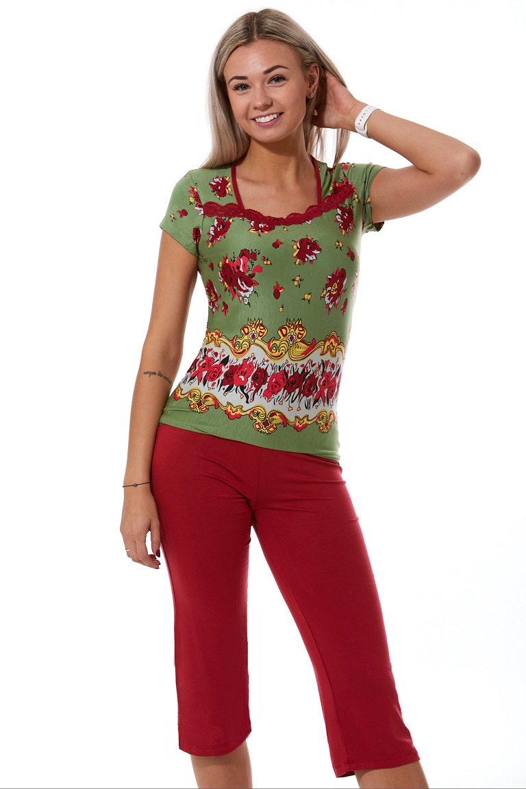 Luxusní dámské pyžamo s krátkým rukávem a 3/4 kalhoty