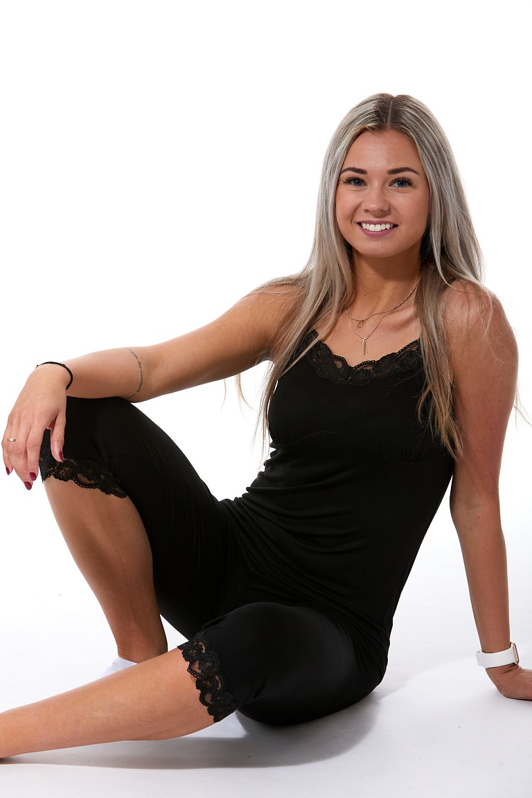 Luxusní dámské pyžamo s tenkým ramínkem a 3/4 kalhoty