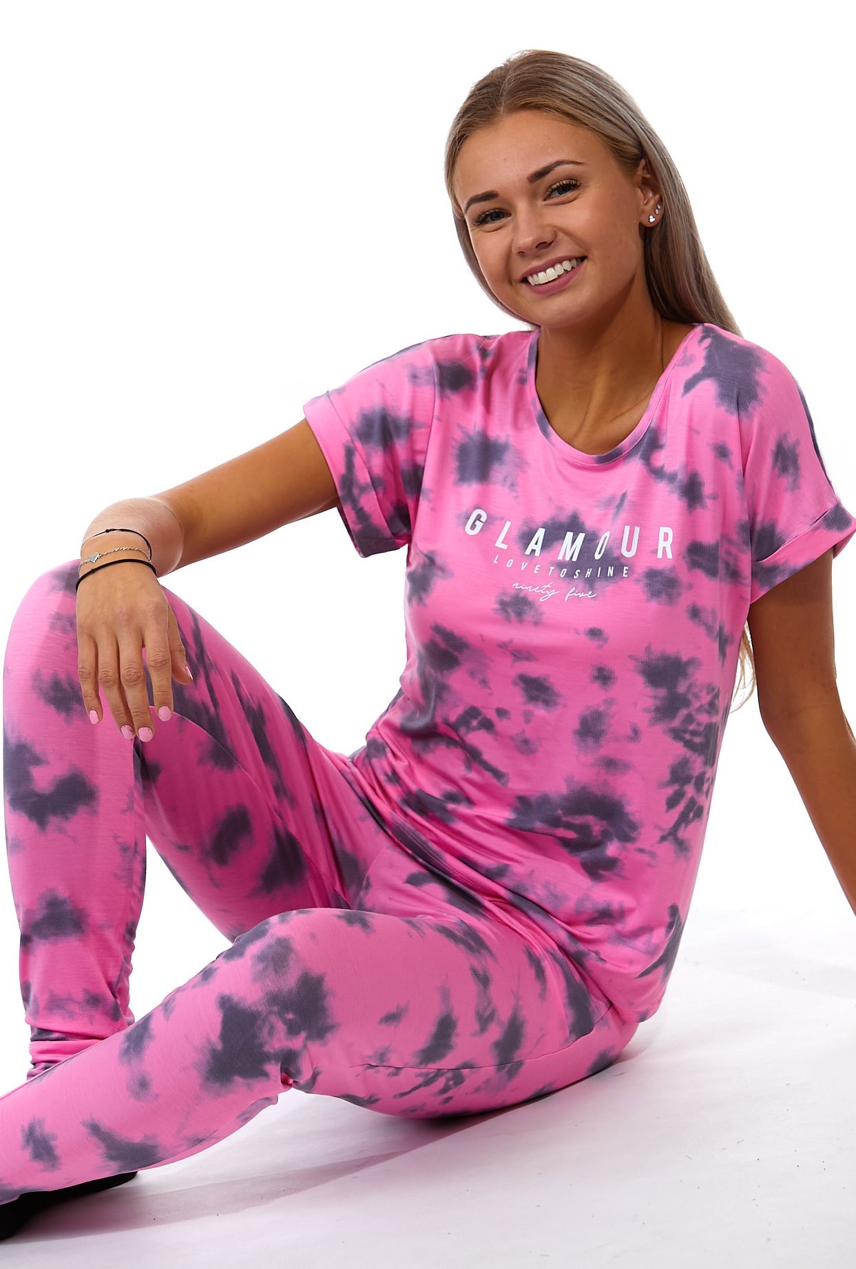 Růžové i šedě batikované jemné luxusní pyžamo pro ženy s krátkým rukávem GLAMOUR