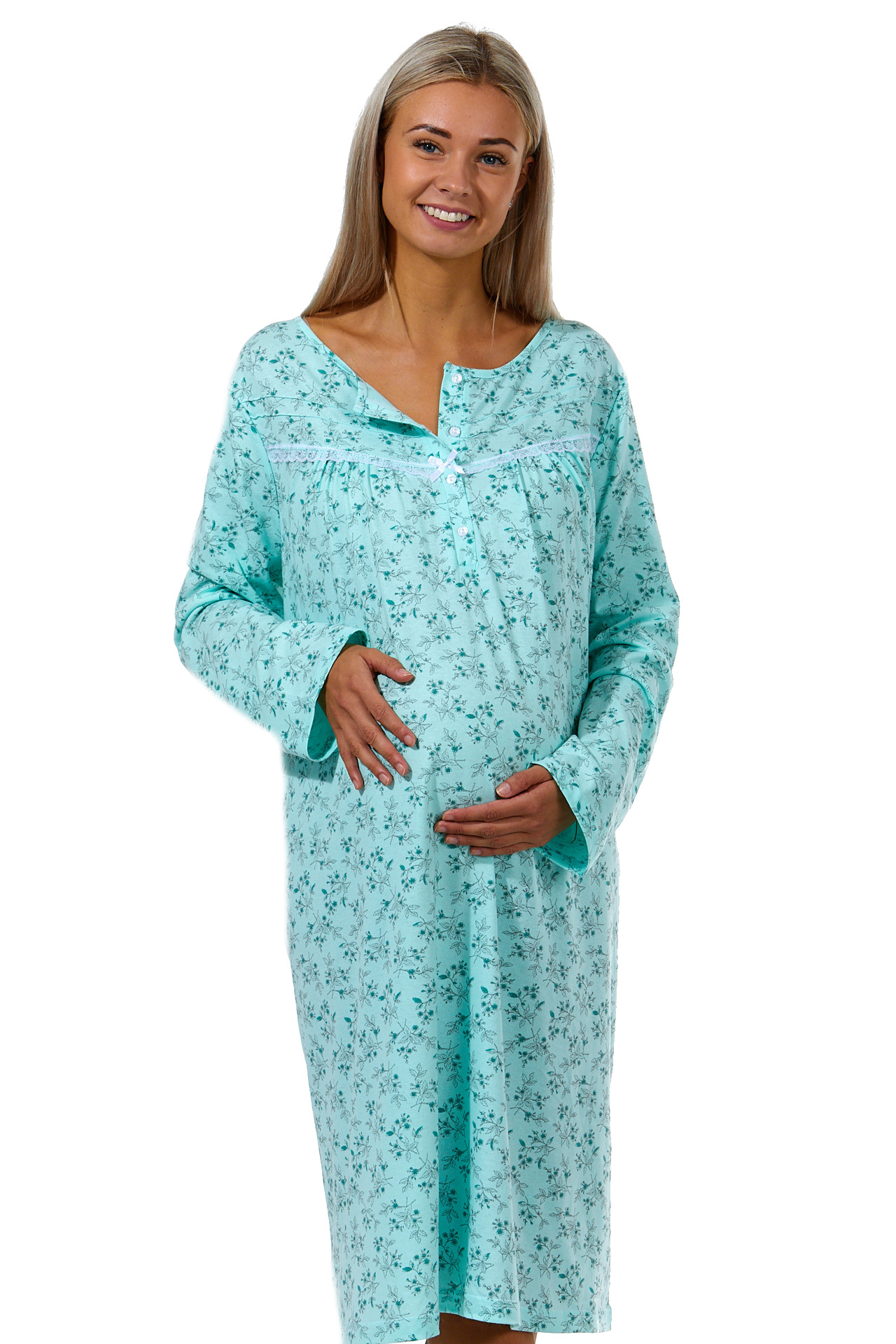 Kojící a těhotenská Dlouhá zelinkavá květovaná noční košilka