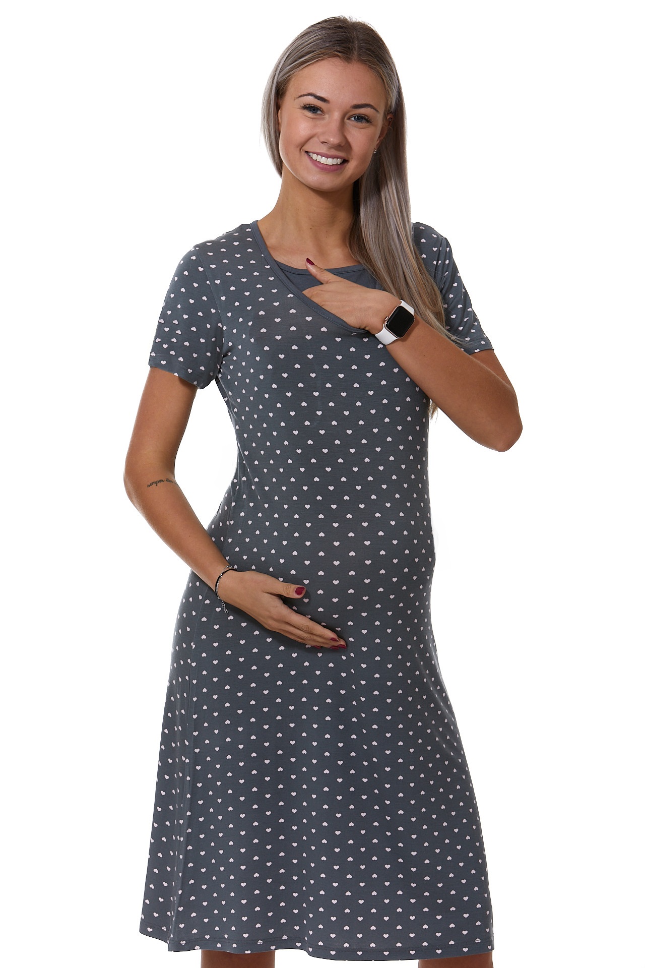 Šedá puntíkatá kojící a těhotenská košilka Gaia