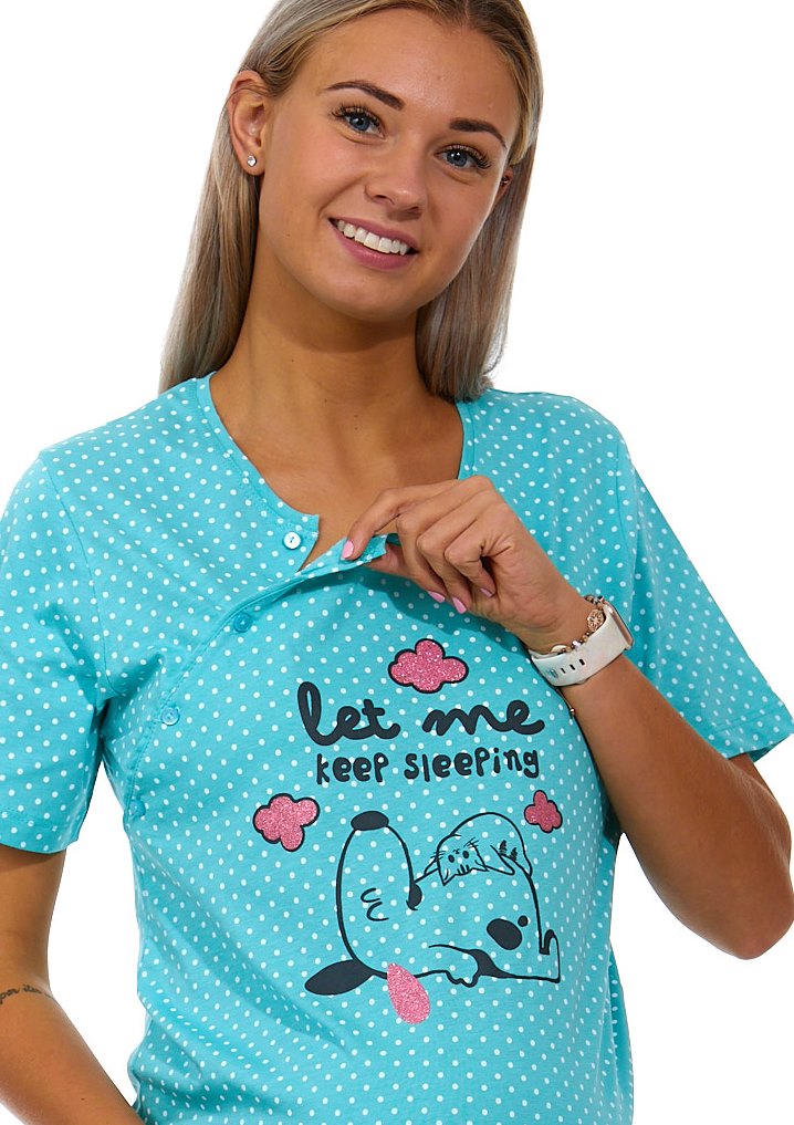 Tyrkysová puntíkatá kojící a těhotenská košilka na knoflíky - let me kepp sleeping