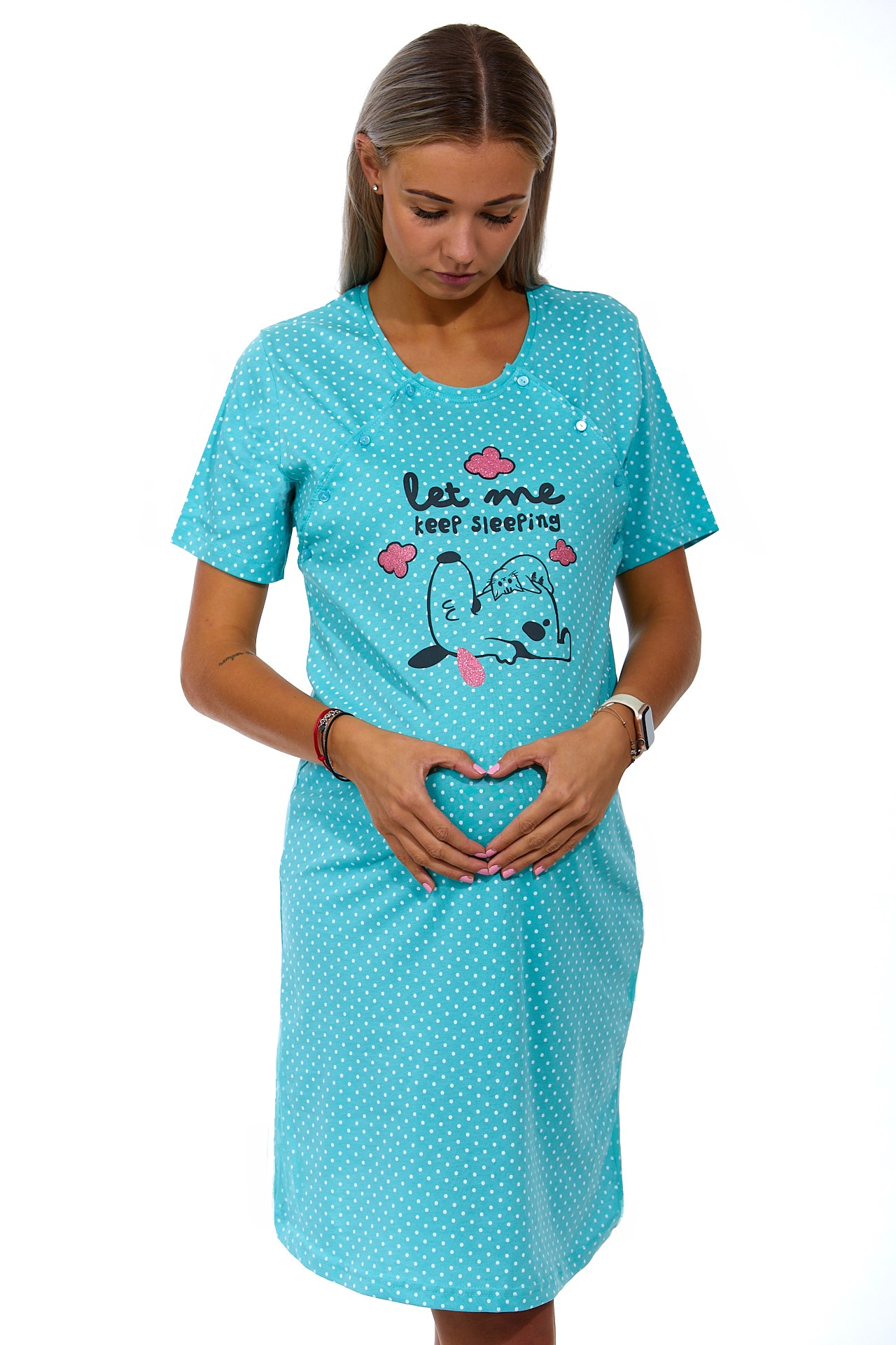 Tyrkysová puntíkatá kojící a těhotenská košilka na knoflíky - let me kepp sleeping 1C3246