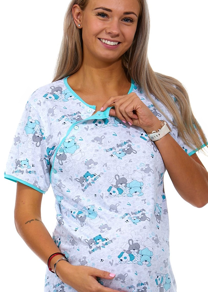 Šedé i azurové kojící a těhotenská košilka na knoflíky - Plyšový mazlíčci 1C3217