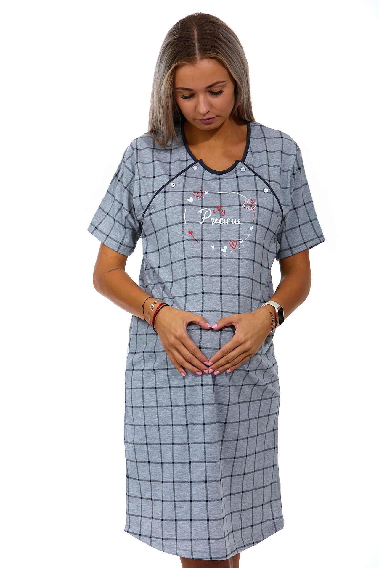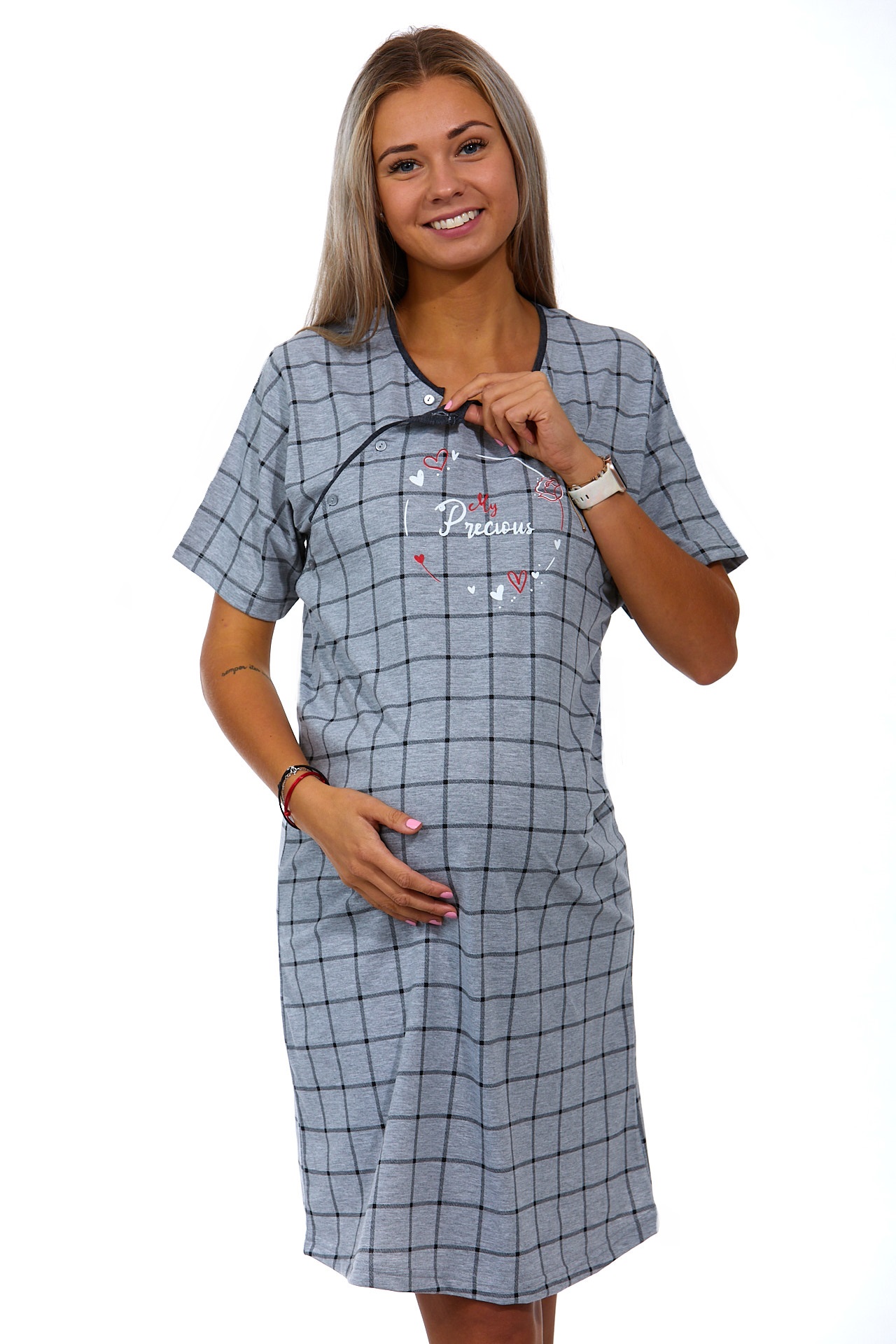 Šedá mřížkovaná kojící a těhotenská košilka na knoflíky My PRECIOUS